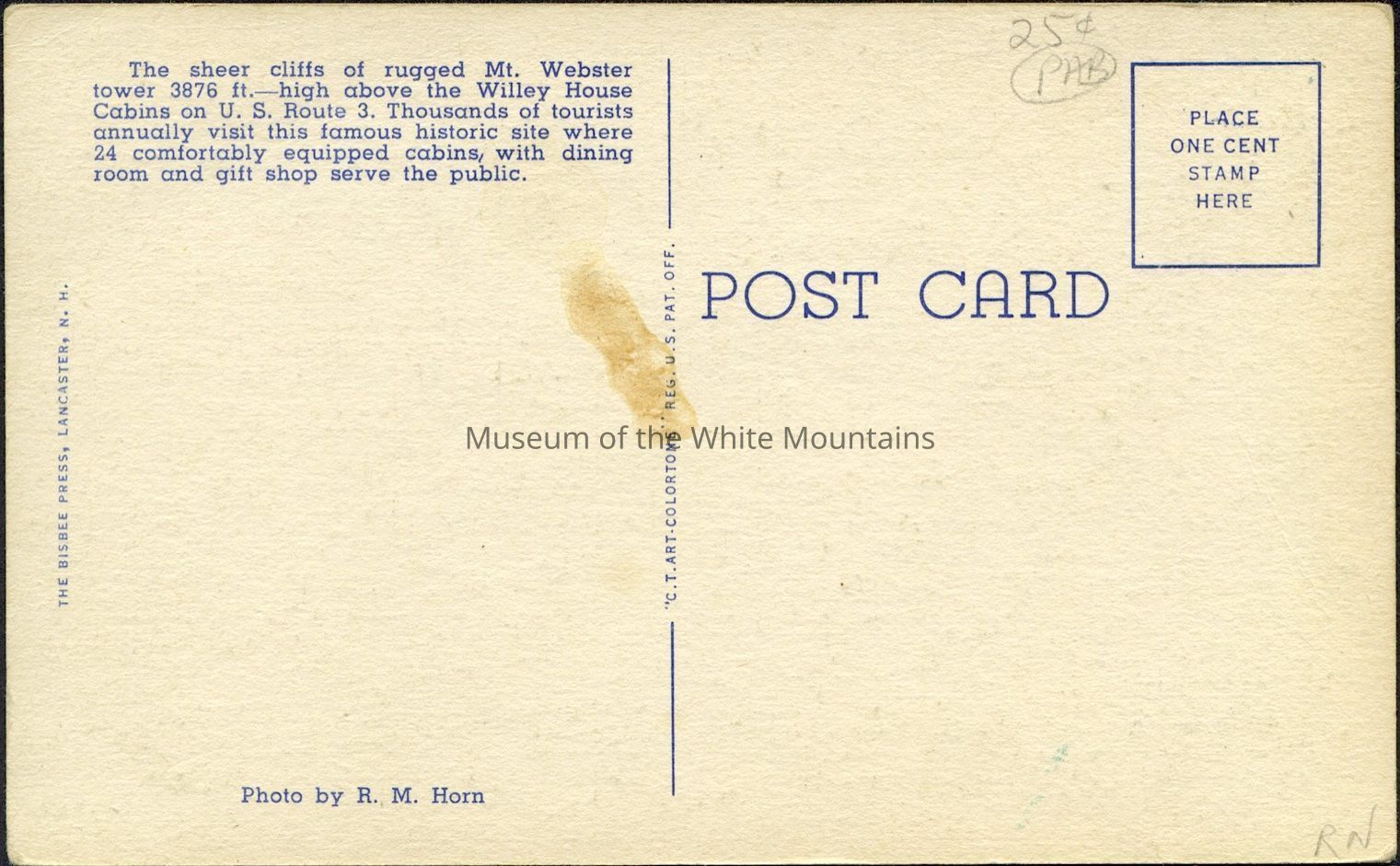 Willey House Camps (Carroll county, New Hampshire : inhabited place), Crawford Notch (New Hampshire : valley), Webster, Mount (Coos county, Carroll county, New Hampshire: peak)