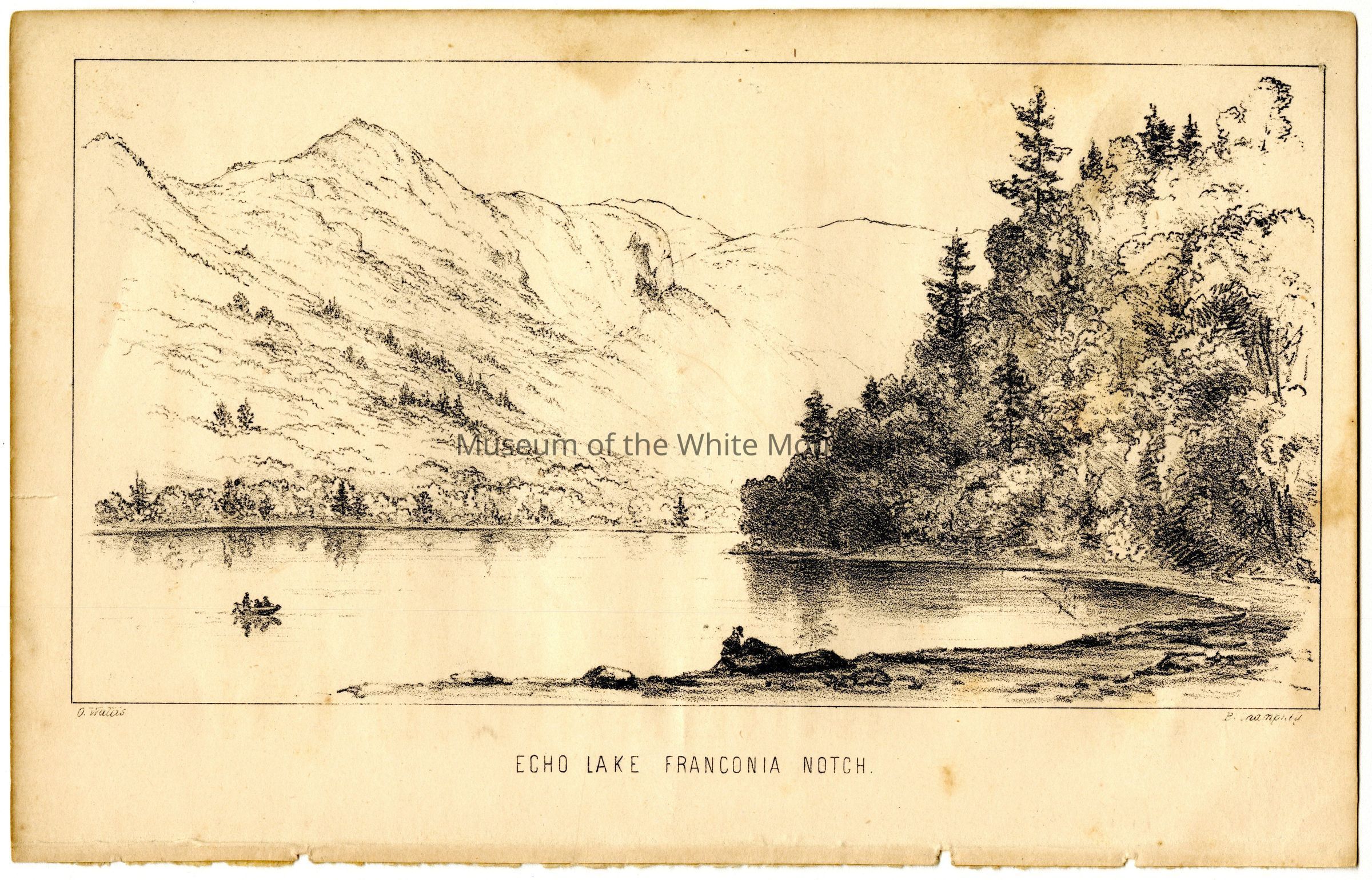 A landscape lithograph of Echo Lake in Franconia Notch.