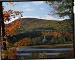 Reflections, Shadows, Churches, Leaves, Trees, Shorelines, Buildings, Bushes, Autumn, MountainsSearch Terms