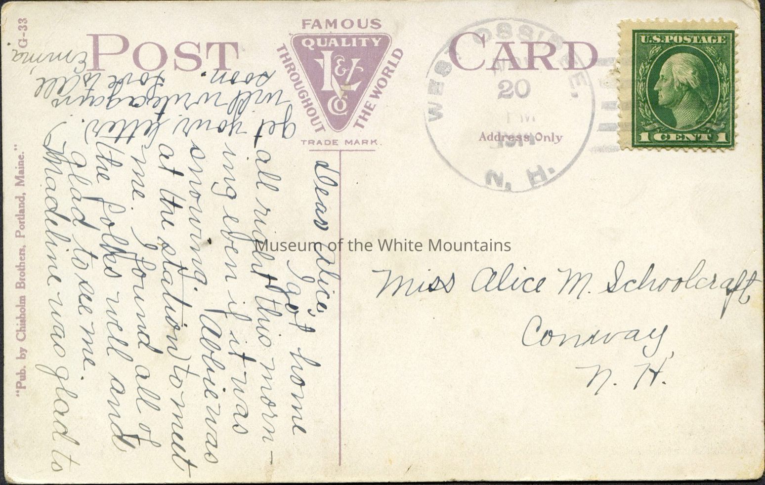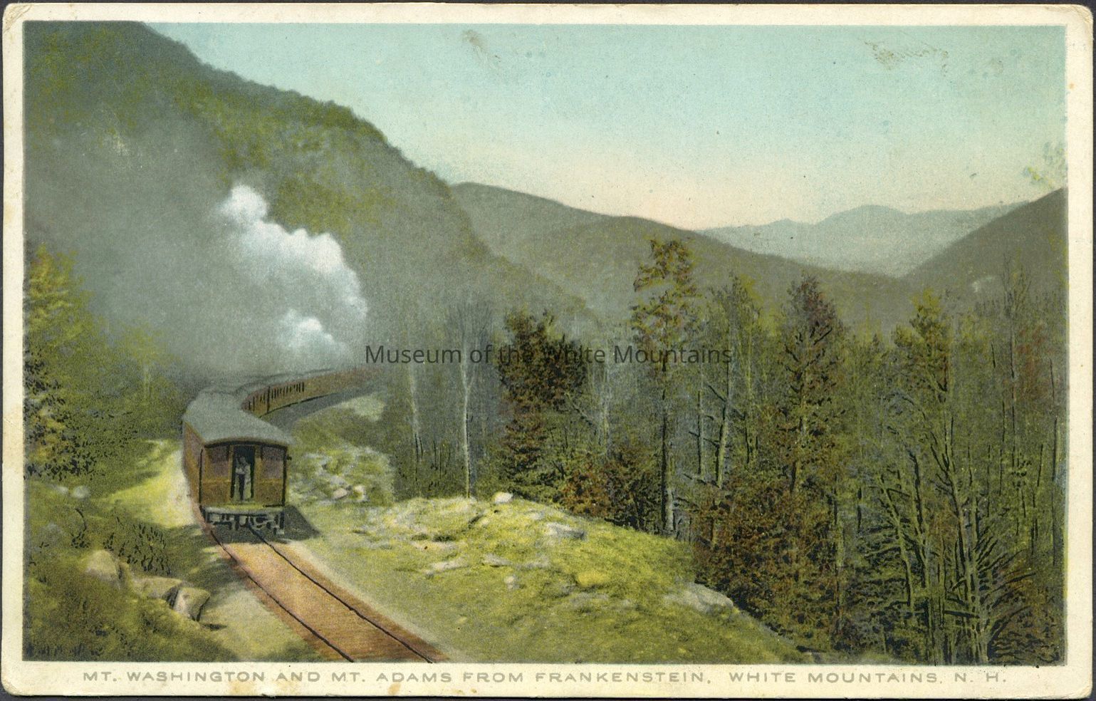 Frankenstein Cliff (Carroll county, New Hampshire : rock), Crawford Notch (New Hampshire : valley), Washington, Mount (Coos county, New Hampshire : mountain), Adams, Mount (Coos county, New Hampshire : peak), Presidential Range (Coos county, New Hampshire : ridge), West Ossipee (Carroll county, New Hampshire : inhabited place), Conway (Carroll county, New Hampshire : inhabited place), Postage Postage Stamps, Railroad Automobiles