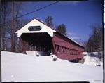 Snow, Telephone lines, Covered bridges, Roads, Signs, Trees, Telephone poles, Power lines, Rivers, BridgesSearch Terms