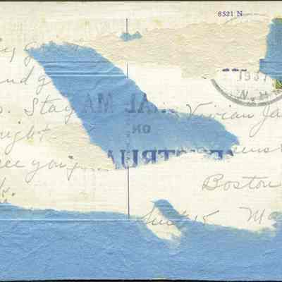 Transcription: -card was attached to blue paper at some point and cannot make out what was written-Collection
