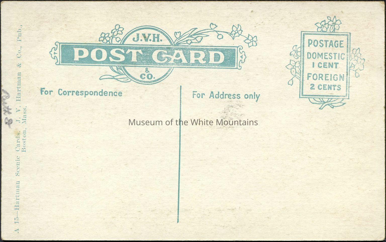 Publisher: J. V. Hartman Post Card Company, Boston, MADimensions