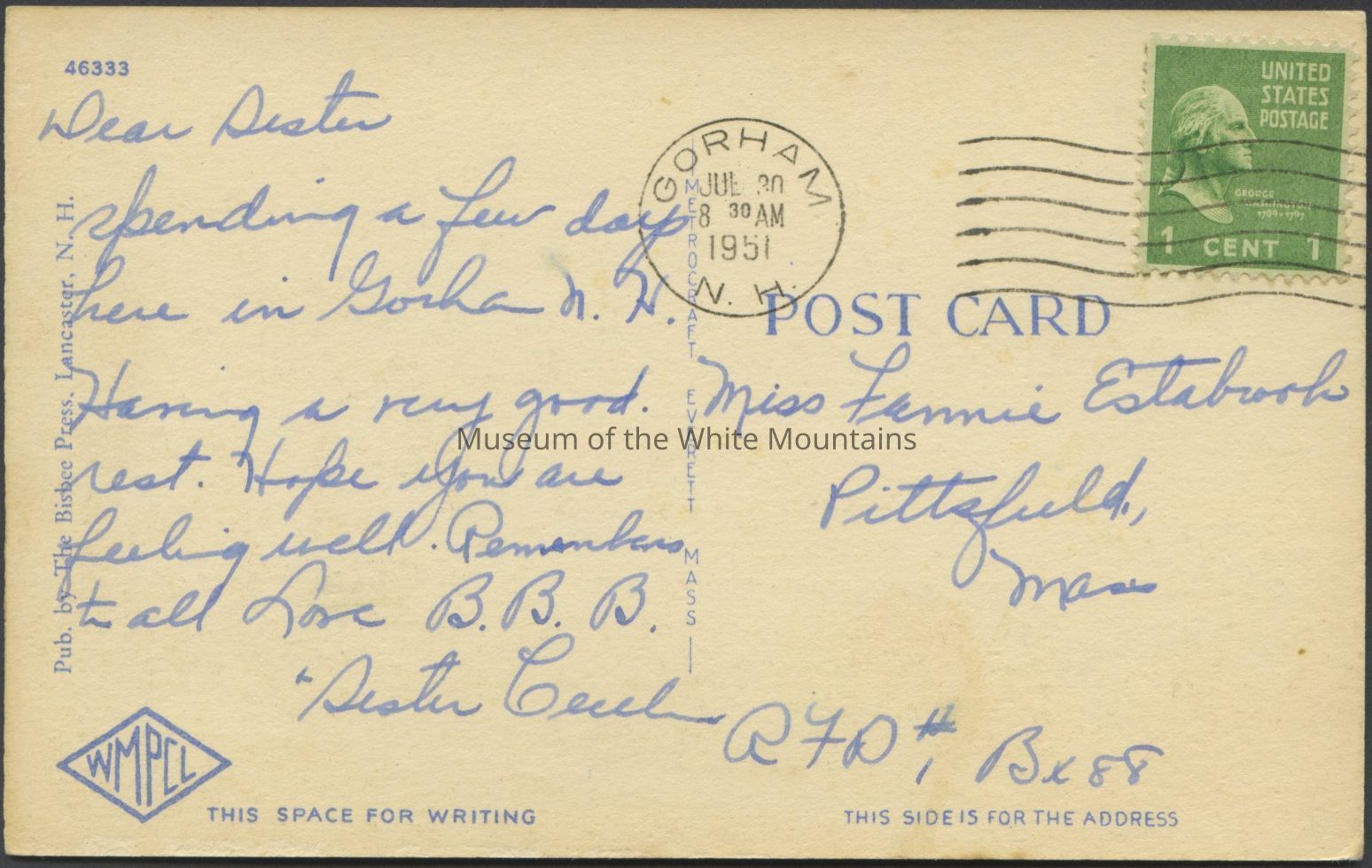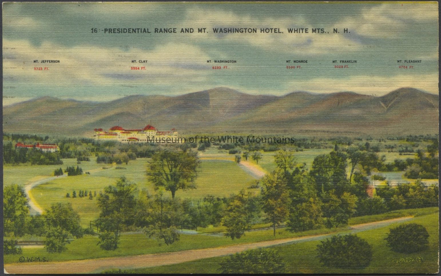 Jefferson, Mount (Coos county, New Hampshire : peak), Clay, Mount (Coos county, New Hampshire : peak), Washington, Mount (Coos county, New Hampshire : mountain), Monroe, Mount (Coos county, New Hampshire : peak), Franklin, Mount (Coos county, New Hampshire : peak), Pleasant, Mount (Coos county, New Hampshire : peak), Bretton Woods (Coos county, New Hampshire : inhabited place), Mount Washington Hotel (Coos county, New Hampshire : inhabited place), Presidential Range (Coos county, New Hampshire : ridge), Gorham (Coos county, New Hampshire : inhabited place), Pittsfield (Berkshire county, Massachusetts : inhabited place), Postage Postage Stamps