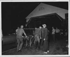 Men, Covered bridges, Roads, Vehicles, Automobiles, People associated with health & safety, Rescue work, Police, Rescue workers, Bridges, StretchersSearch Terms
