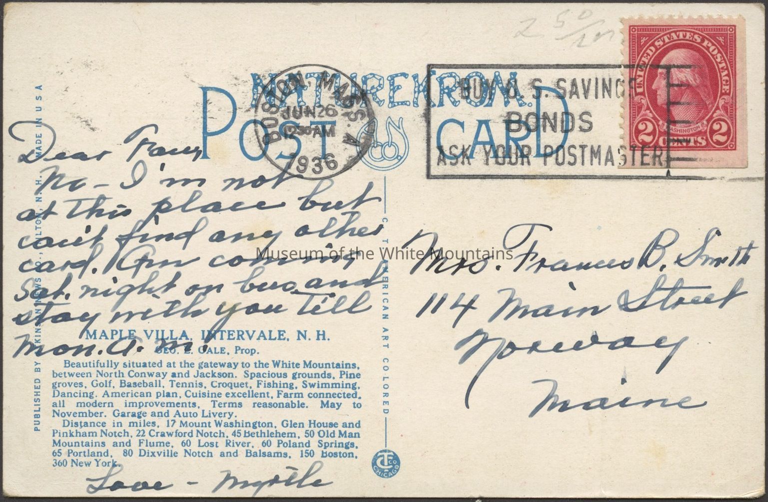 Maple Villa (Carroll county, New Hampshire : inhabited place), Intervale (Carroll county, New Hampshire : inhabited place), Boston (Suffolk county, Massachusetts : inhabited place), Norway (Oxford county, Maine : inhabited place), Postage Postage Stamps