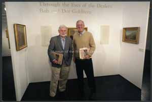 Charles Vogel standing beside Warren Schomaker of the Jackson Historical Society in front of the Bob and Dot Goldberg exhibit feartured at the Museum of the White Mountains, 2013.Collection