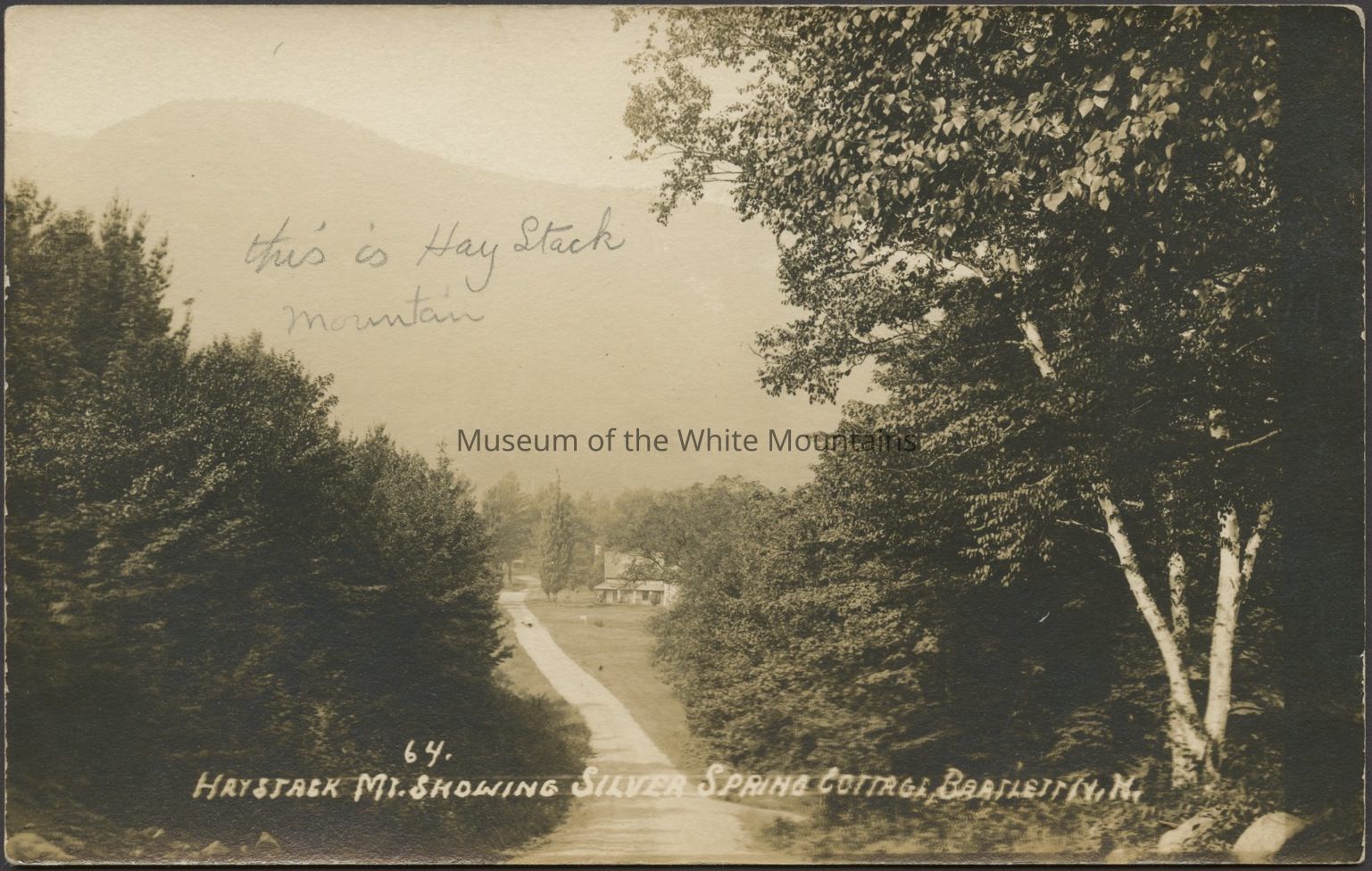 Haystack Mountain (Coos county, Merrimack county, Grafton county, New Hampshire : peak), Bartlett (Carroll county, New Hampshire : inhabited place), Silver Springs Lodge and Cabins (Carroll county, New Hampshire : inhabited place)