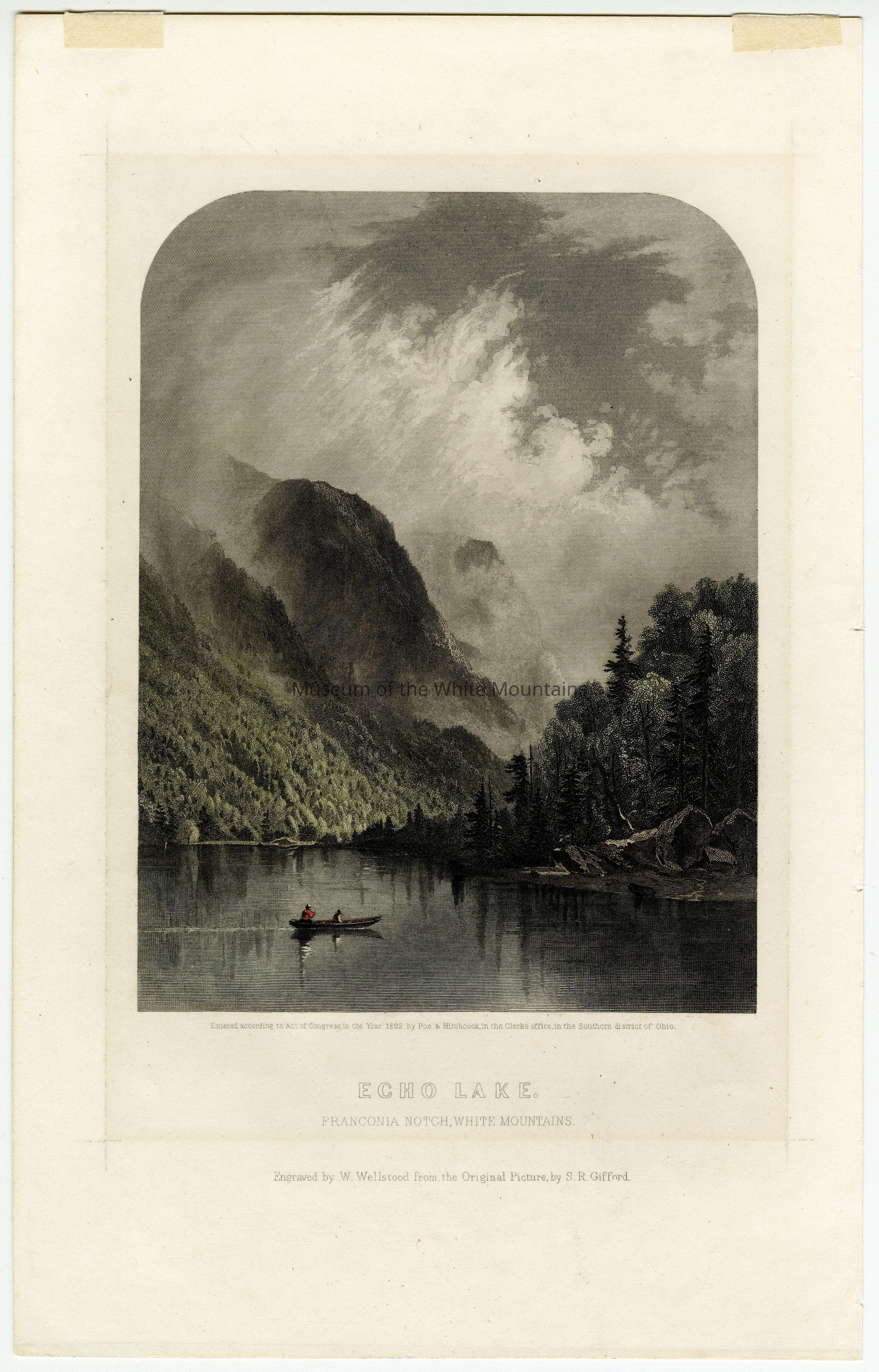 ECHO LAKE. / FRANCONIA NOTCH, WHITE MOUNTAINS. / Engraved by W. Wellstood from the Original Picture by S.R. Gifford.Language