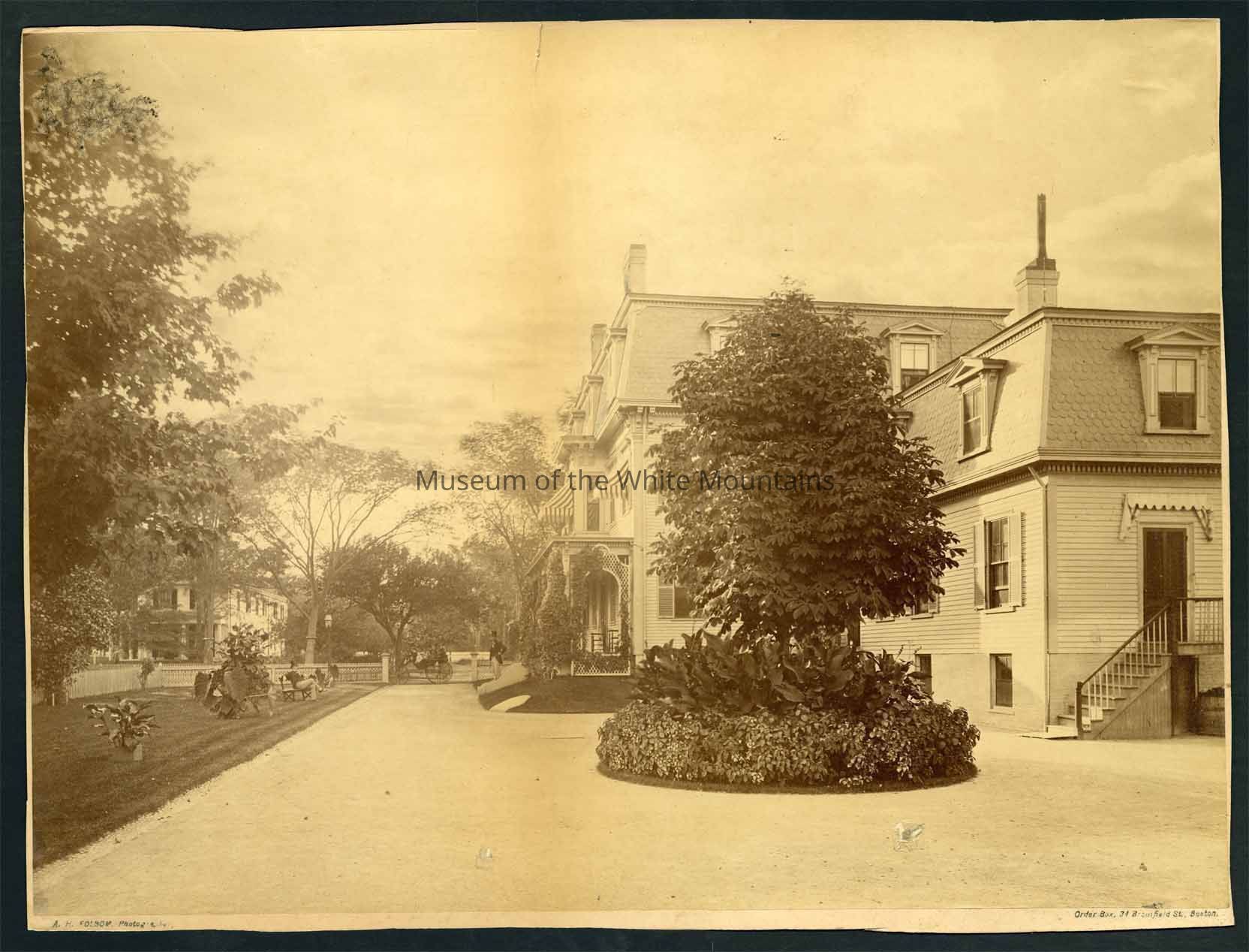 Benches, Carriage drivers, Men, Trees, Dormers, Lamp posts, Coaches, Gardens, People, Houses, Neighborhoods, Hipped roofs, Lattices, Garden, Vines, Men & women, Awnings, Porches, ElsSearch Terms
