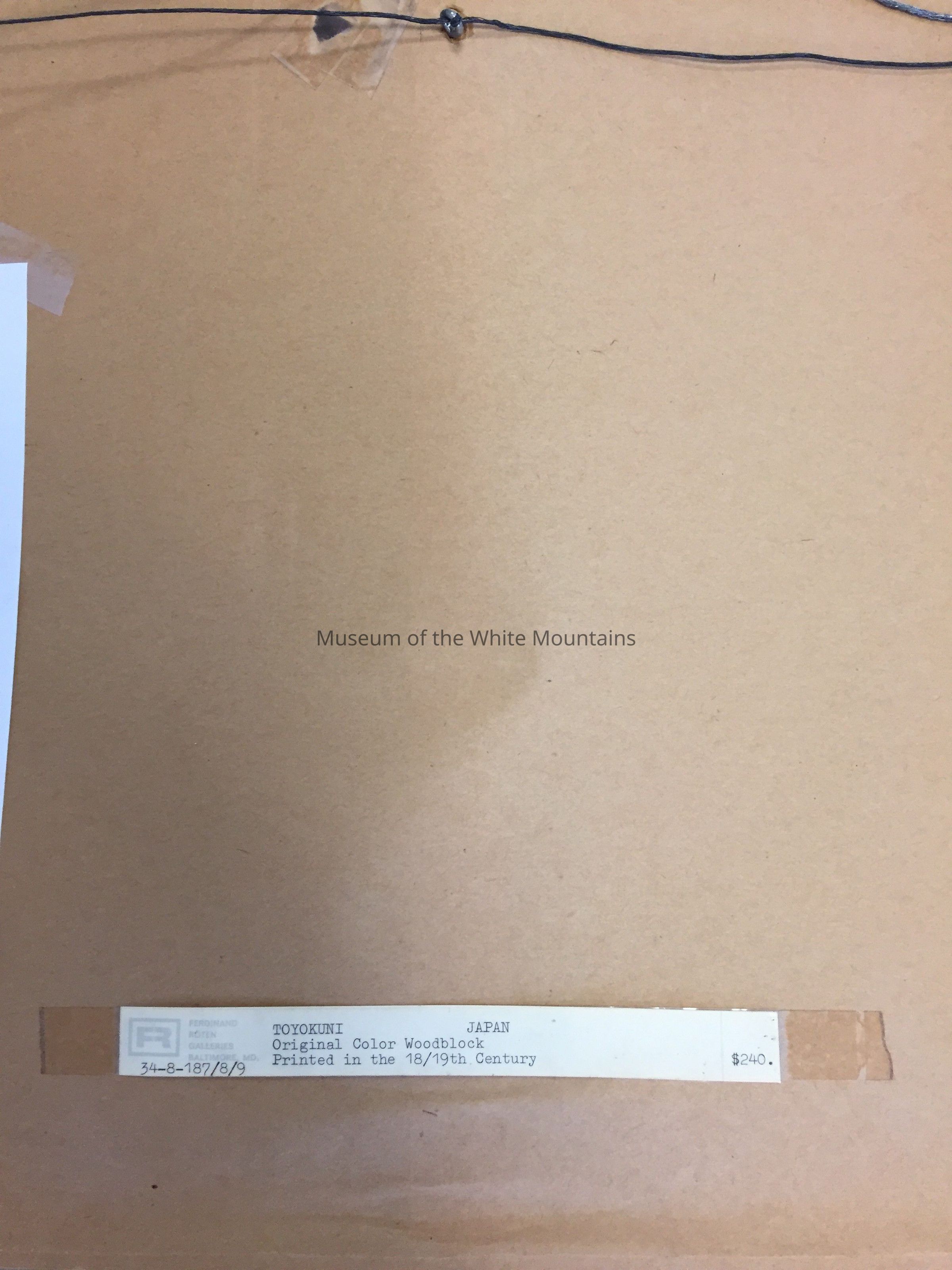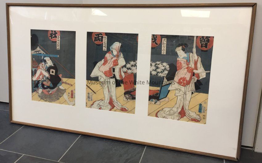 Toyokuni, Japanese theater scene. Original color woodblock, printed in 18th-19th century Japan. Ukiyo-e, color woodblock. inv. #34-8-187-/8/9 (from back of print). Purchased/ donated to the PSU art department by Professor Terry Downs.Collection