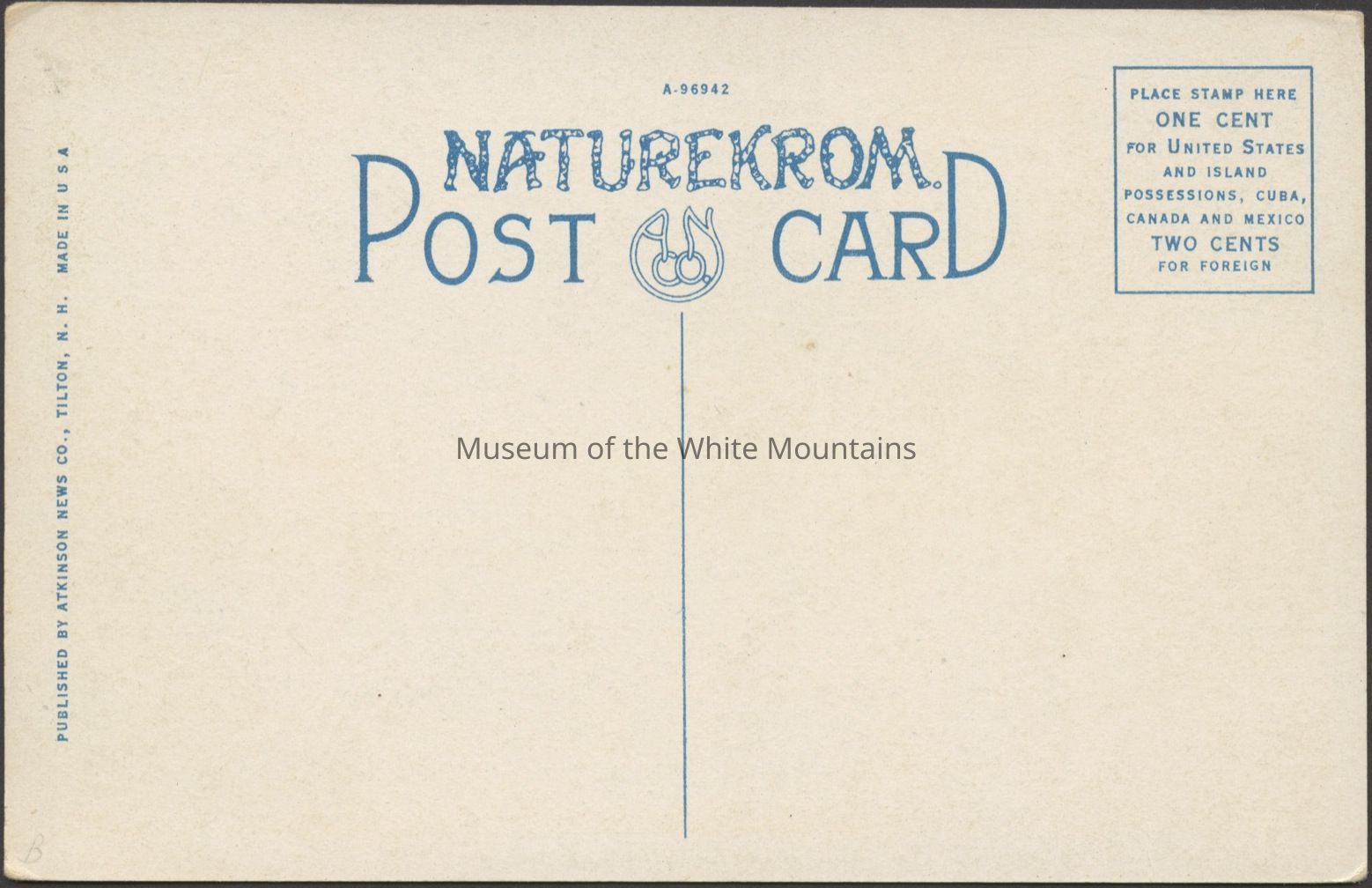 Back Description: Typical postcard back.Collection
