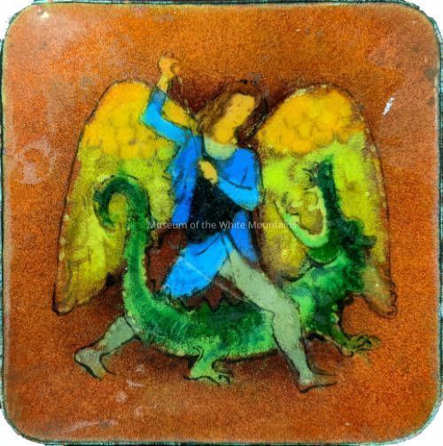 This enamel on copper dish depicts St. Peter standing over a green serpent. Undated.Acquisition