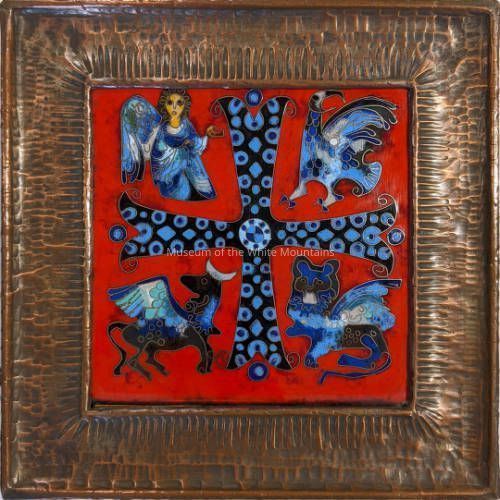 Enamel on copper plaque depicting a cross and other religious symbols. Undated.Artwork Details