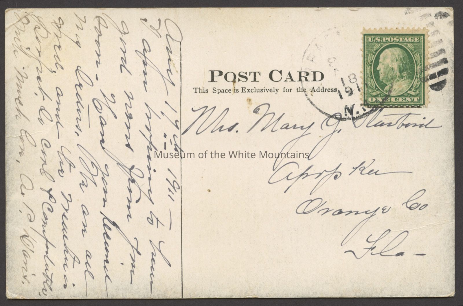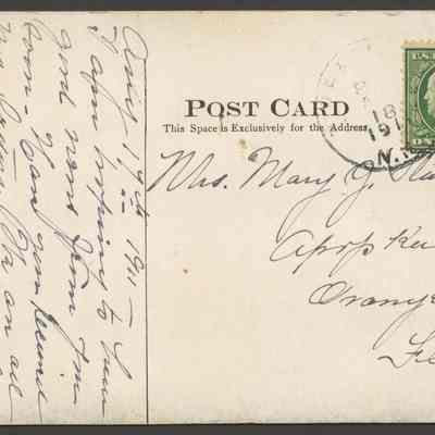 Back Description: Typical postcard back. Features a handwritten note, postmark, and postage stamp.