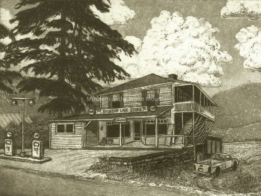 The general store is an important place in small towns. Early on they were the post office as well. One can find the basic necessities and get caught up with the local news here. This image is of the general store at Stinson Lake. It has since closed.