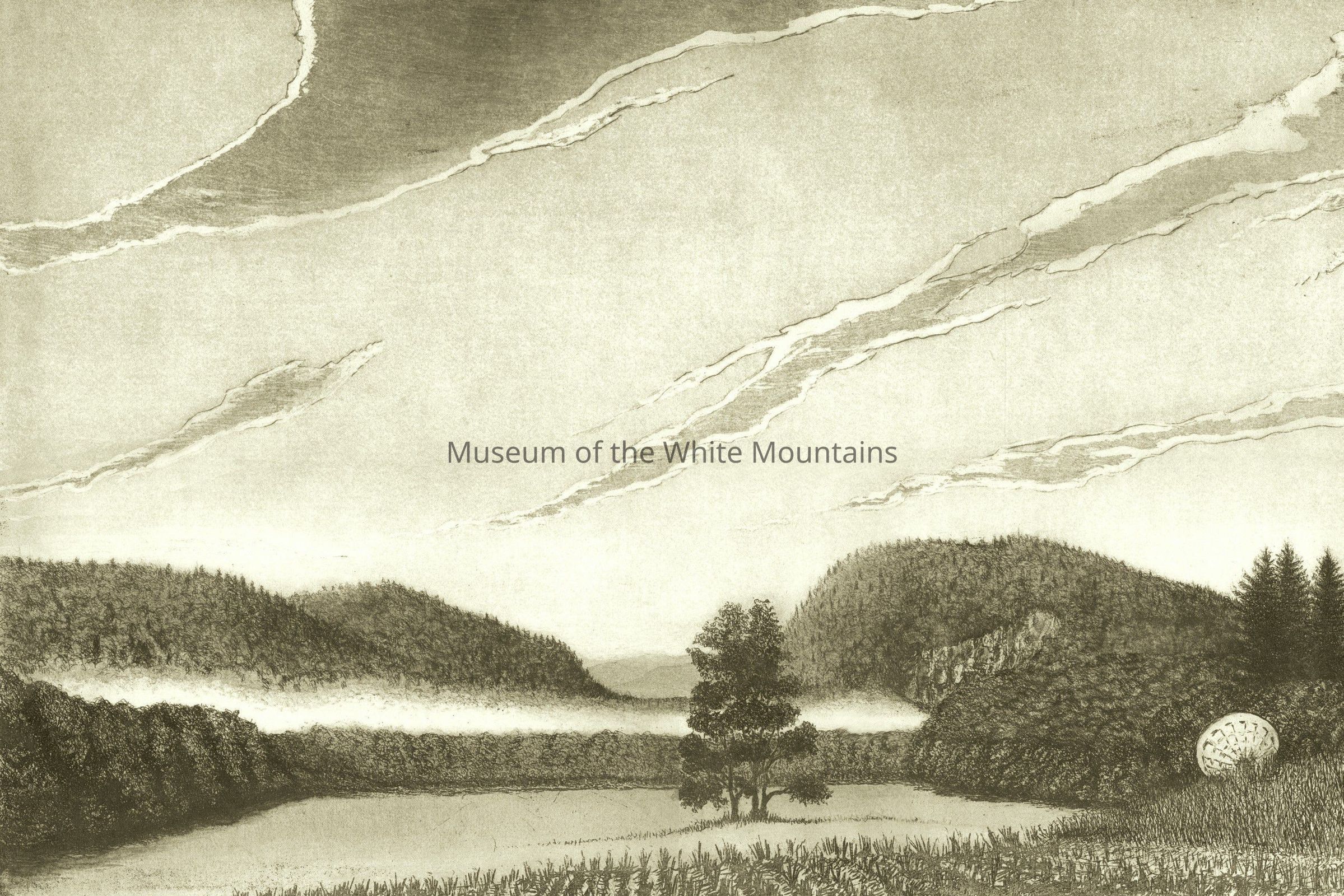 This the capstone of the suite. It represents the constant beauty of nature that is being encroached upon by the modern world. This spot is the gap in mountains on Quincy Road. The enormous satellite dish has since been replaced by more contemporary technology. The ridge is now occupied by a line of large wind turbines generating electricity for Southern New England.