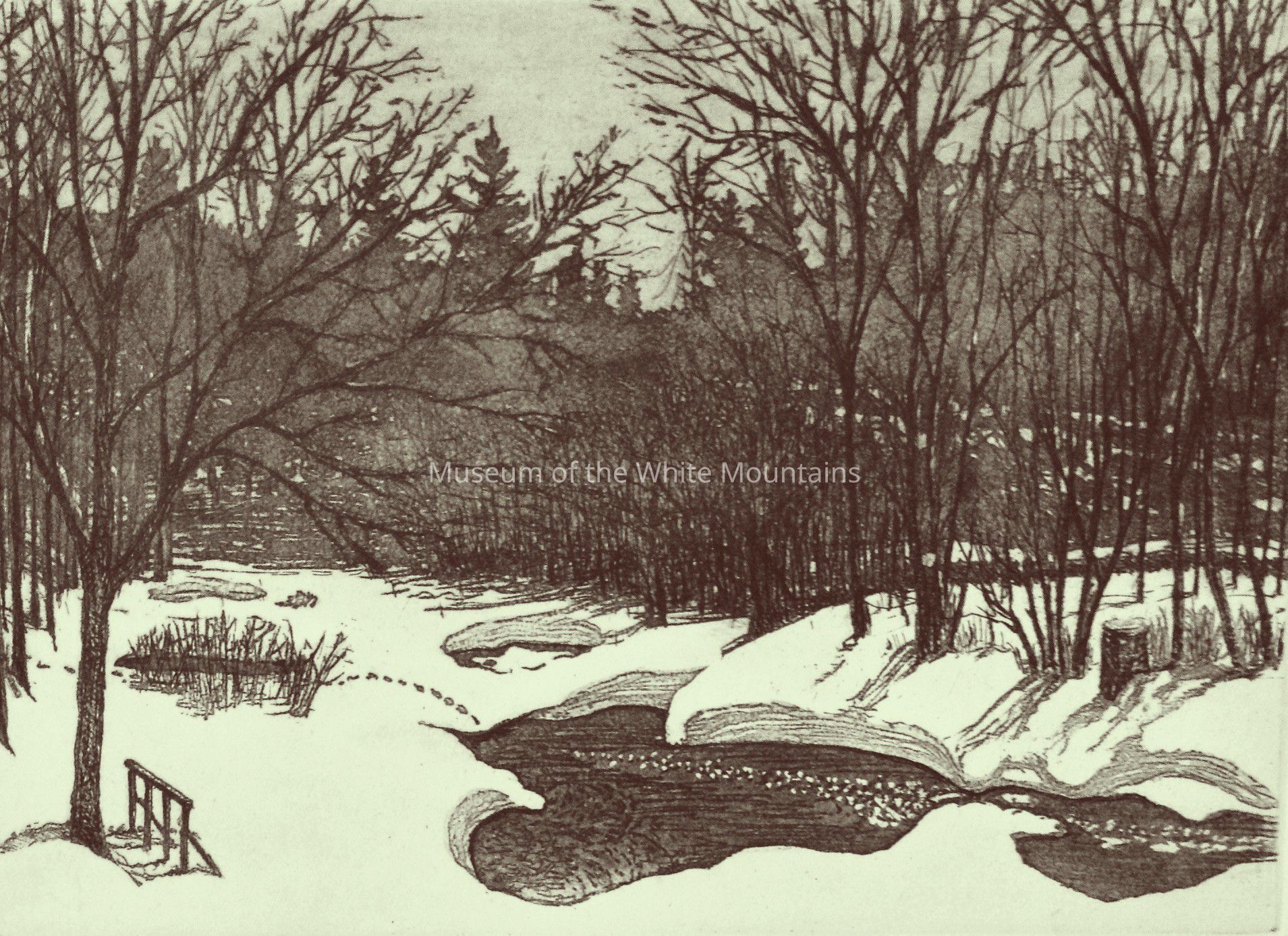 Stinson Brook in winter is a beautiful scene. In the cold weather it flows gently, leaving open patches without ice. In this instance an invisible wisp of air rolled slowly down the stream making contact with surface as it quietly went along.Acquisition