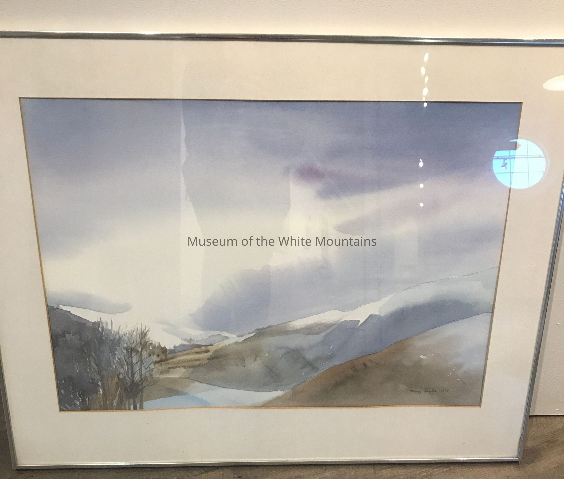 Winter landscape scene, depicting snow covered mountains and hill and a river.Acquisition