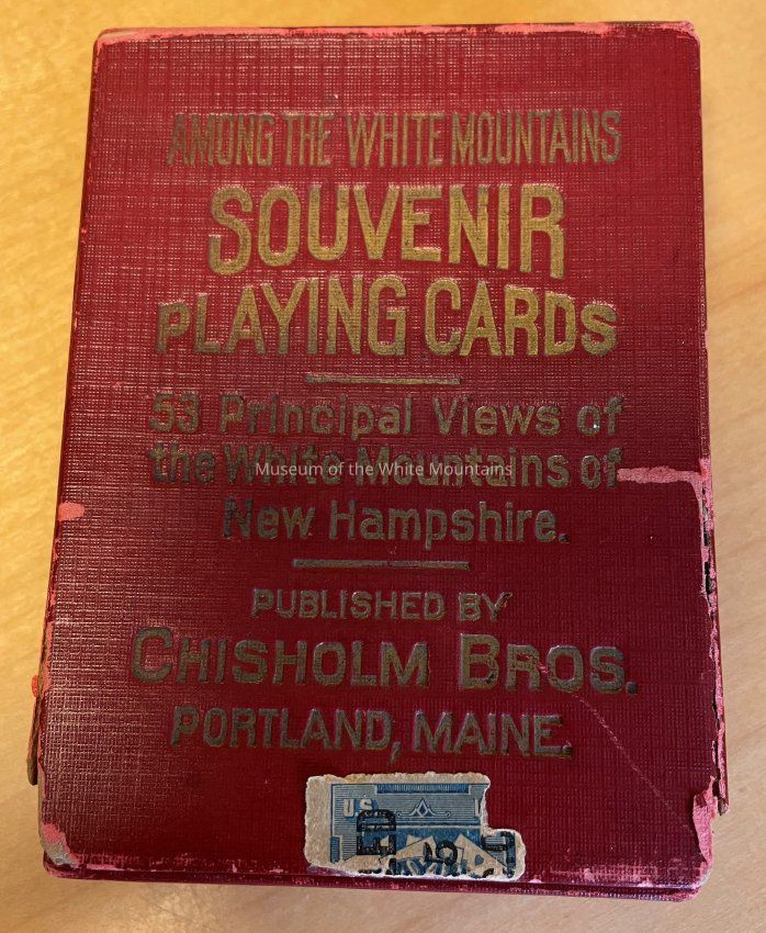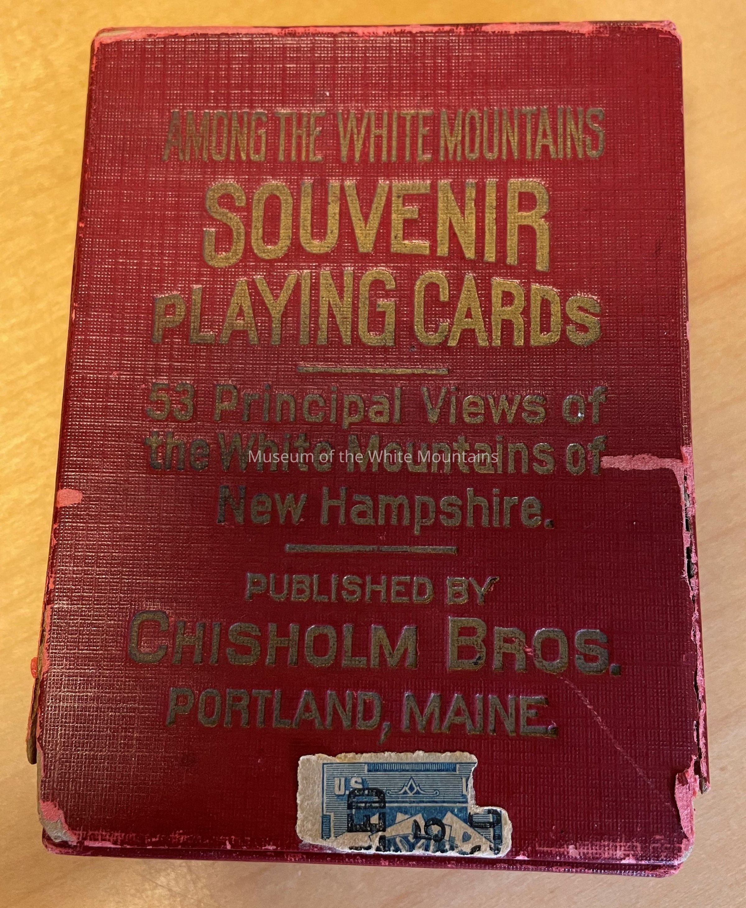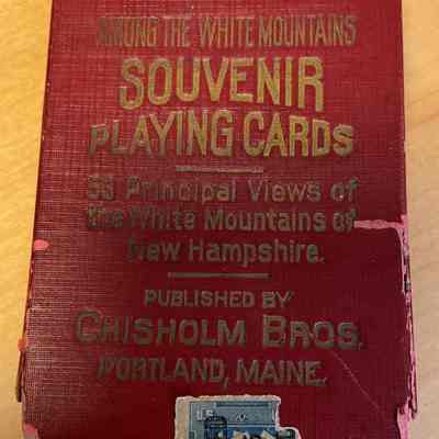 Complete set of souvenir playing cards published by Chisholm Bros of Portland Maine. Featuring 83 principal views of the White Mountains. The cards are in excellent condition and in their original box.