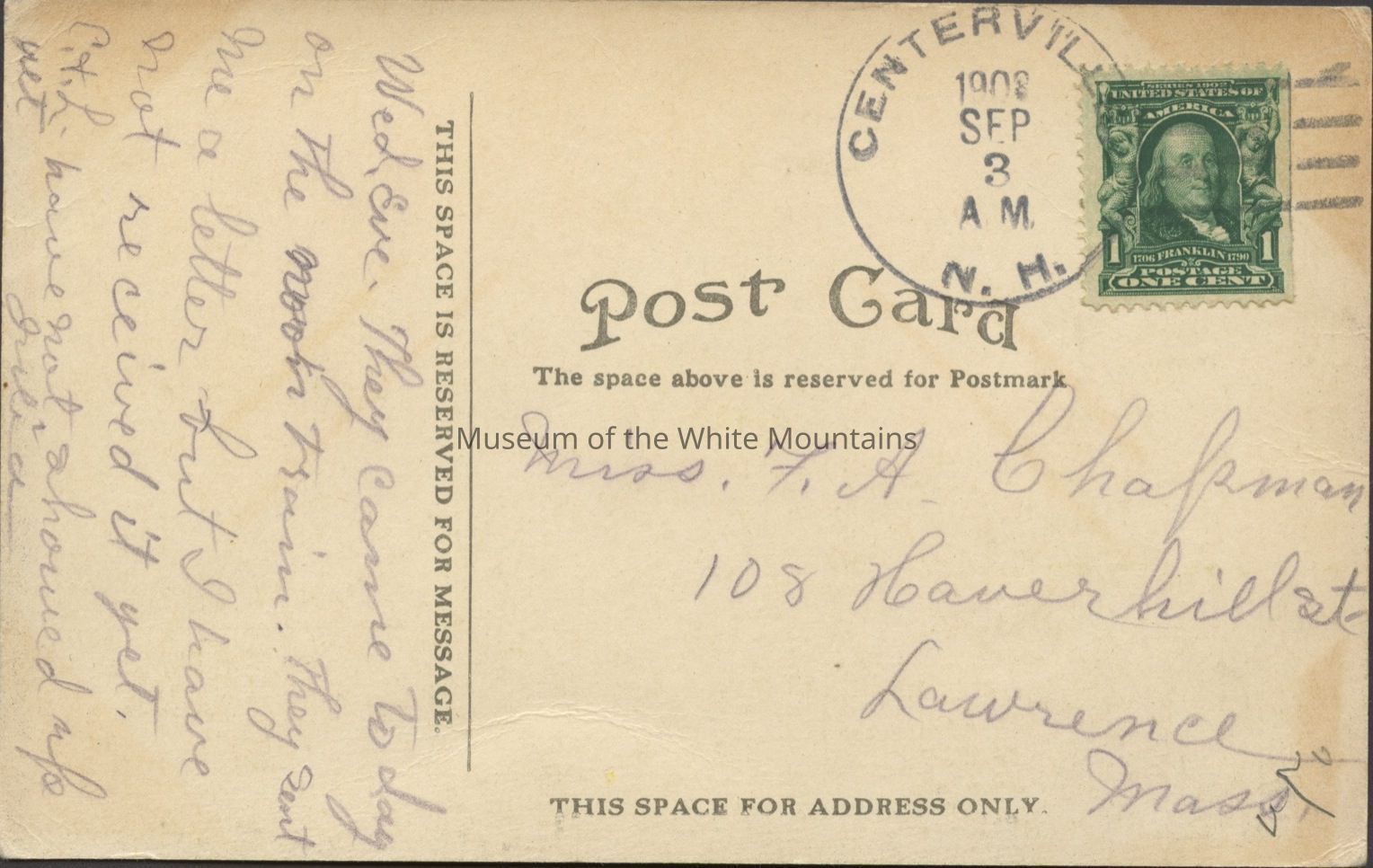 Back Description: Typical postcard back. Features a handwritten note, postmark, and postage stamp.