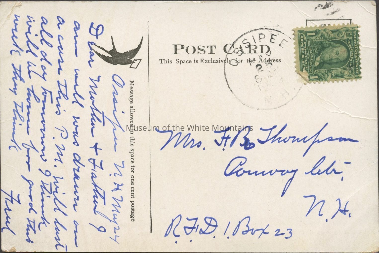 Ossipee (Carroll county, New Hampshire : inhabited place), Leighton's Corner (Carroll county, New Hampshire : inhabited place), Chocorua, Mount (Carroll county, New Hampshire : peak), Tuftonboro (Carroll county, New Hampshire : inahbited place), Wolfeboro (Carroll county, New Hampshire : inhabited place), Conway (Carroll county, New Hampshire : inhabited place)