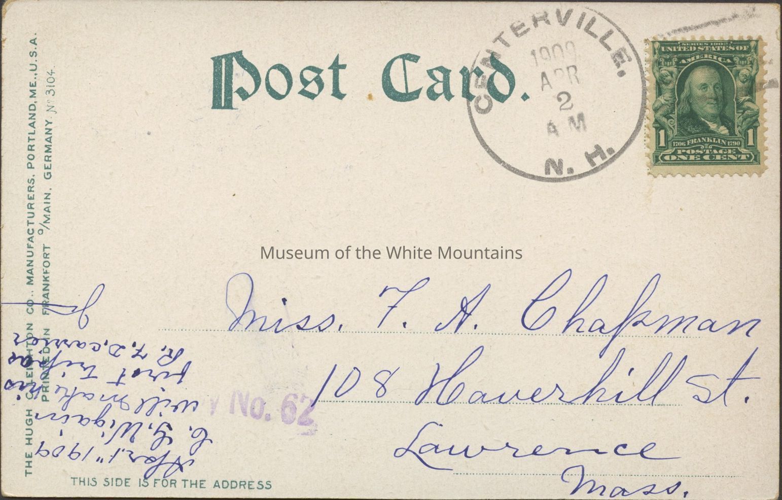 West Ossipee (Carroll county, New Hampshire : inhabited place), Chocorua River (Carroll county, New Hampshire : river), Bearcamp River (Carroll county, New Hampshire : river), Lowell (Middlesex county, Massachusetts : inhabited place), Postage Postage Stamps