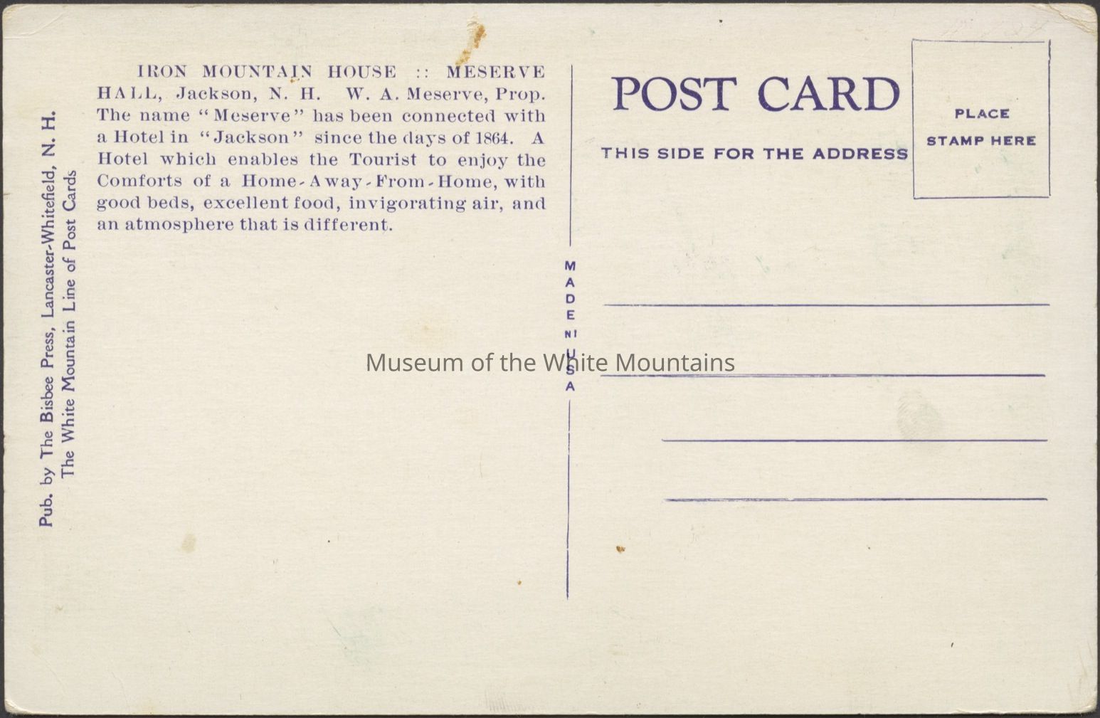 Iron Mountain House (Carroll county, New Hampshire : inhabited place), Jackson (Carroll county, New Hampshire : inhabited place), Meserve Hall (Carroll county, New Hampshire : inhabited place)