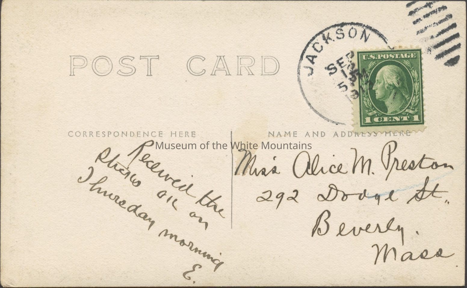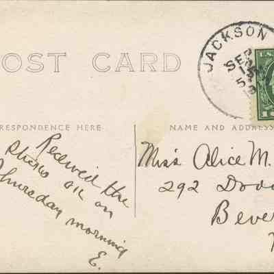 Addressed: Miss Alice M. Preston 292 Dodge St. Beverly Mass,