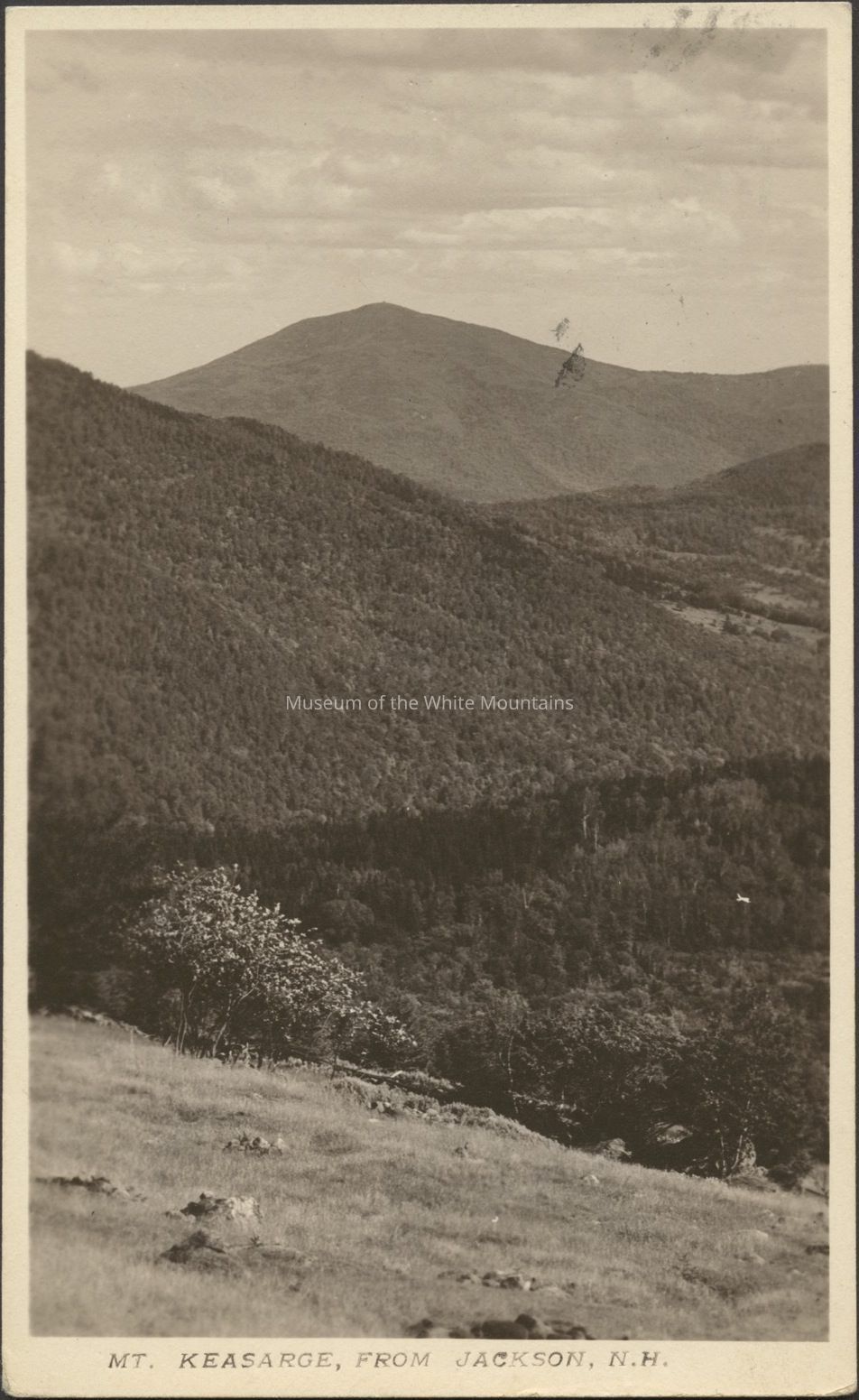 Black and white image of mountains. Caption reads, “Mt. Kearsarge, from Jackson, NH.”