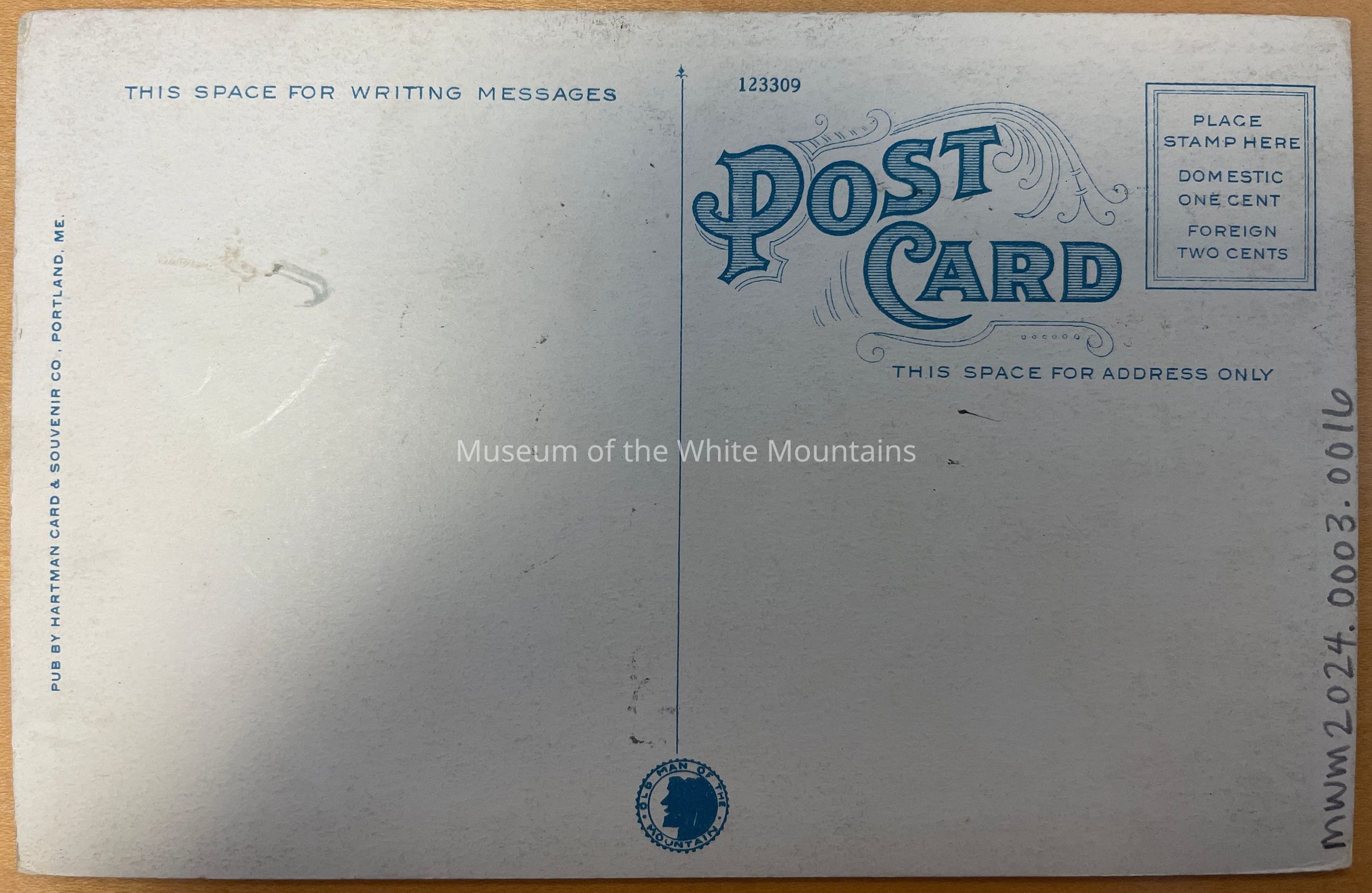 Back Description: Typical postcard back. Features an empty postmark and empty postage stamp. No transcription.Subject Place