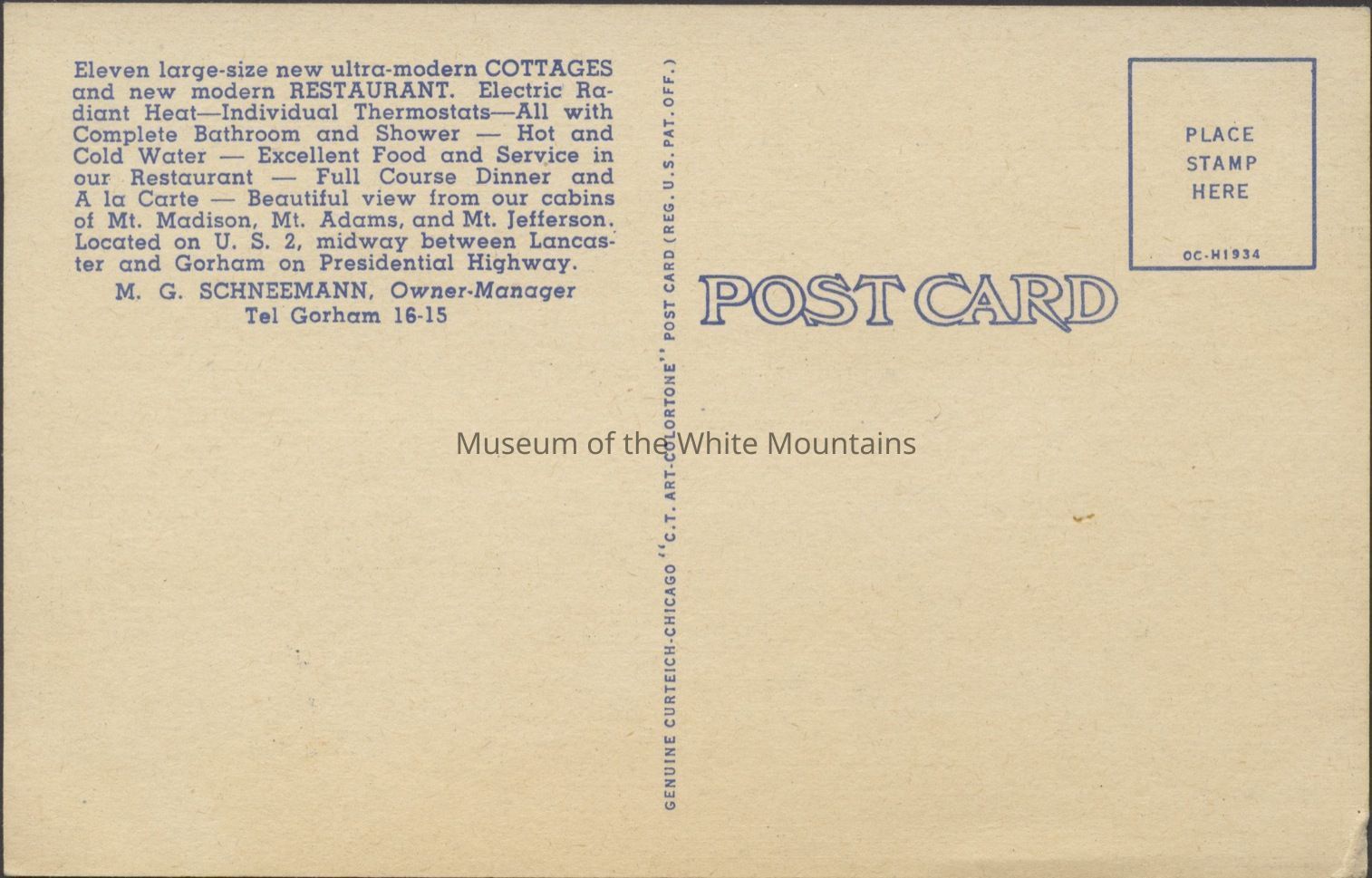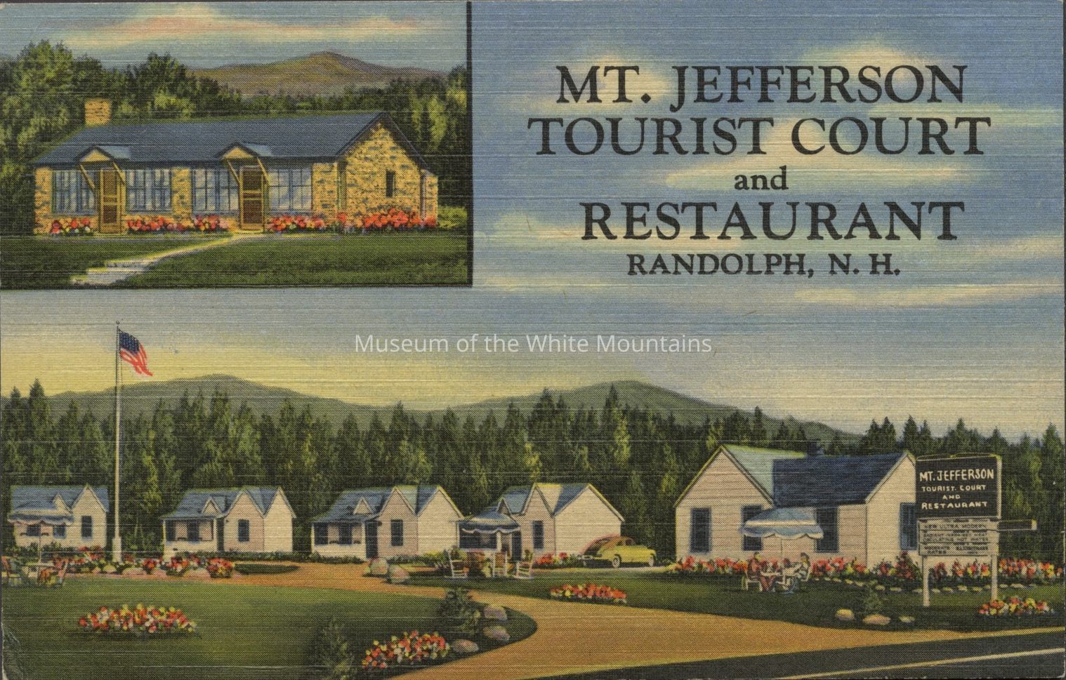 Mount Jefferson Tourist Court and Restaurant (Coos county, New Hampshire : inhabited place), Jefferson, Mount (Coos county, New Hampshire : peak), Route 2, Presidential Highway, Gorham (Coos county, New Hampshire : inhabited place)