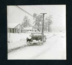Snow, Automobiles, Streets, Roads, Houses, Electric lines, Trees, Police
