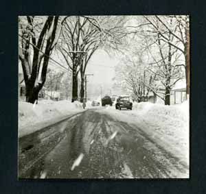 Snow, Automobiles, Streets, Roads, Houses, Electric lines, Trees