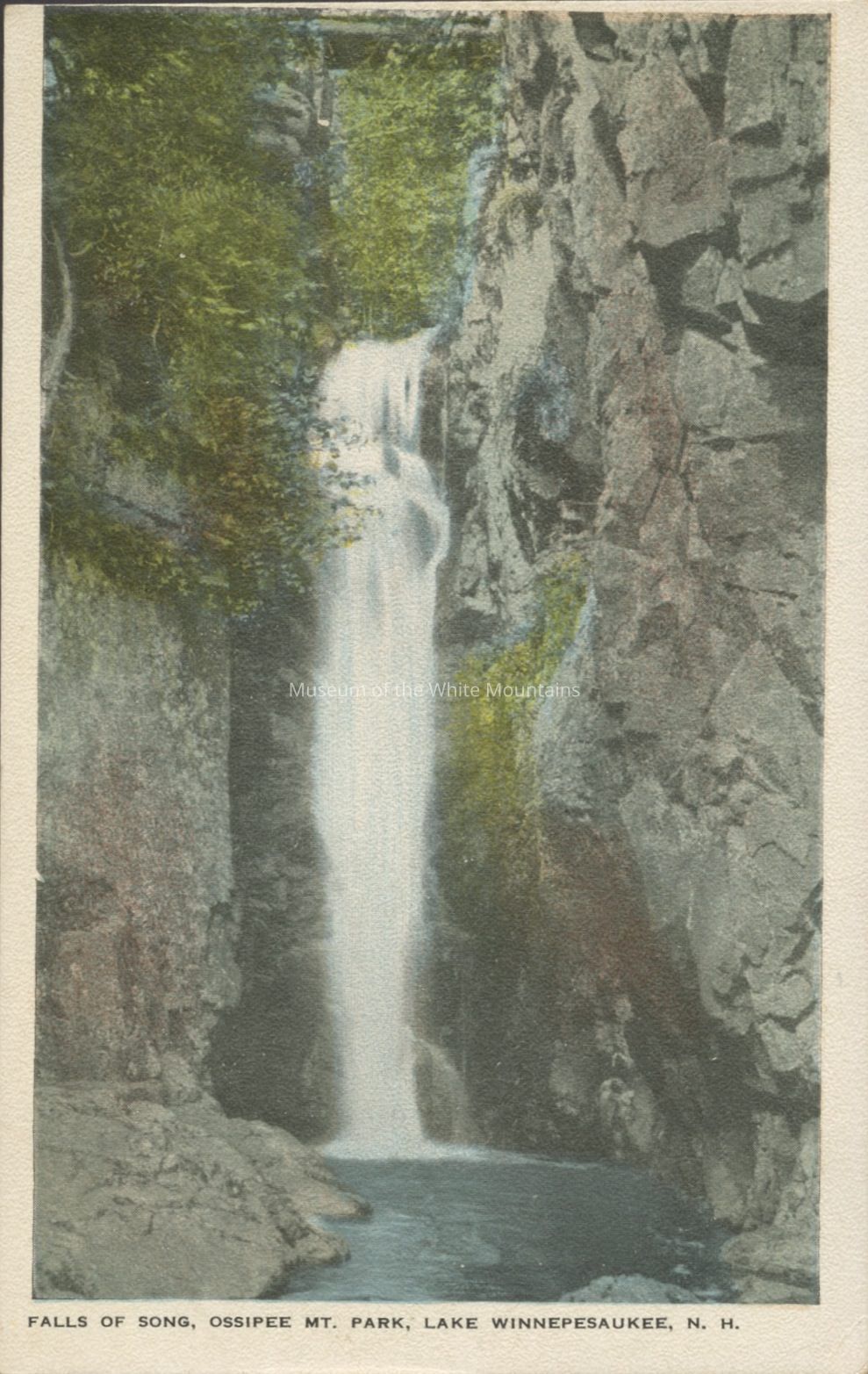 Falls of Songs (Carroll county, New Hampshire : waterfall), Ossipee Mountains (Carroll county, New Hampshire : mountain range), Winnipesaukee, Lake (New Hampshire : lake)
