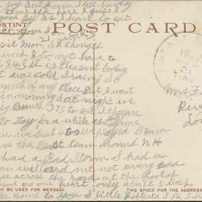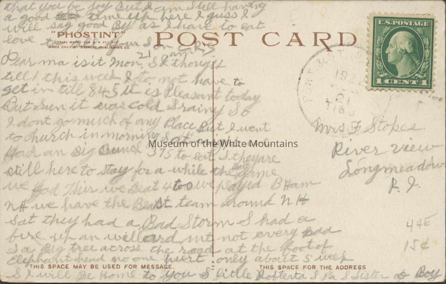 Back Description: Typical postcard back. Features a handwritten note, postmark, and postage stamp. Postcard looks to be sent from "Longmeadow, RI"
