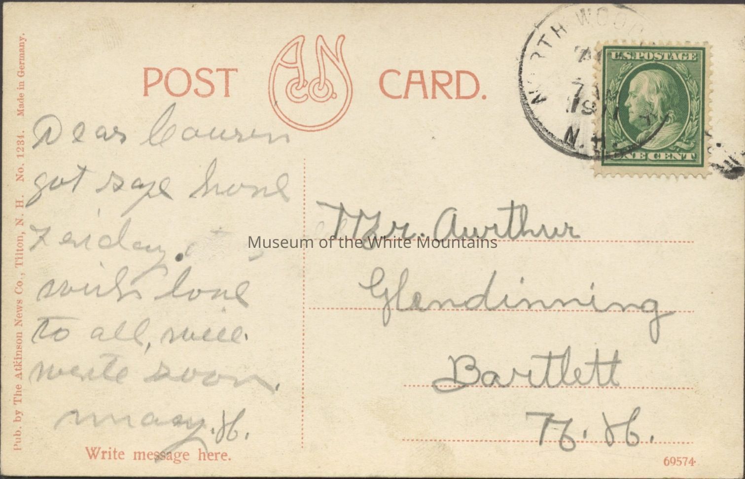 Flume House (Grafton county, New Hampshire : inhabited place), Franconia (Grafton county, New Hampshire : inhabited place), Franconia Notch (Grafton county, New Hampshire : valley), Bartlett (Carroll county, New Hampshire : inhabited place), North Woodstock (Grafton county, New Hampshire : inhabited place), Postage