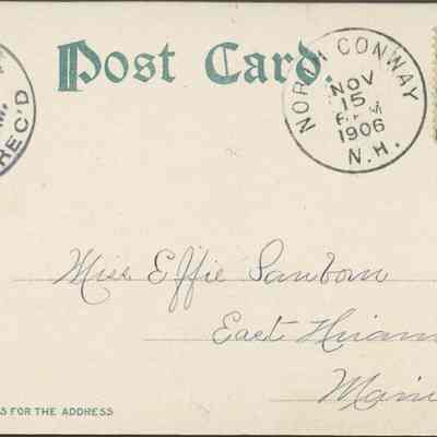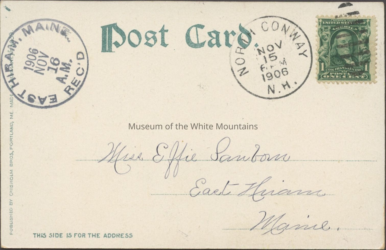 Flume House (Grafton county, New Hampshire : inhabited place), Franconia (Grafton county, New Hampshire : inhabited place), East Hiram (Oxford county, Maine : inhabited place), North Conway (Carroll county, New Hampshire : inhabited place), Postage
