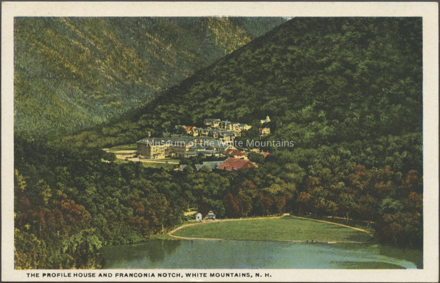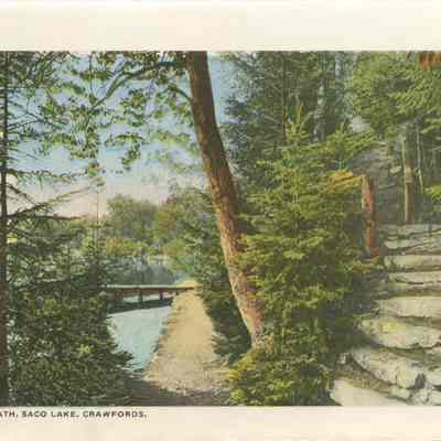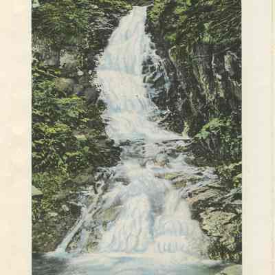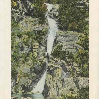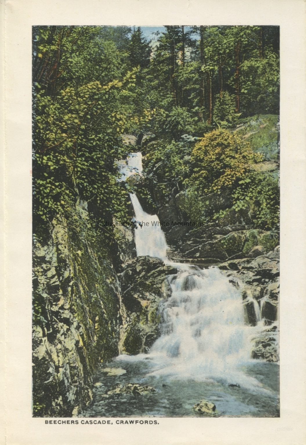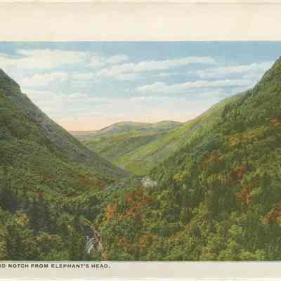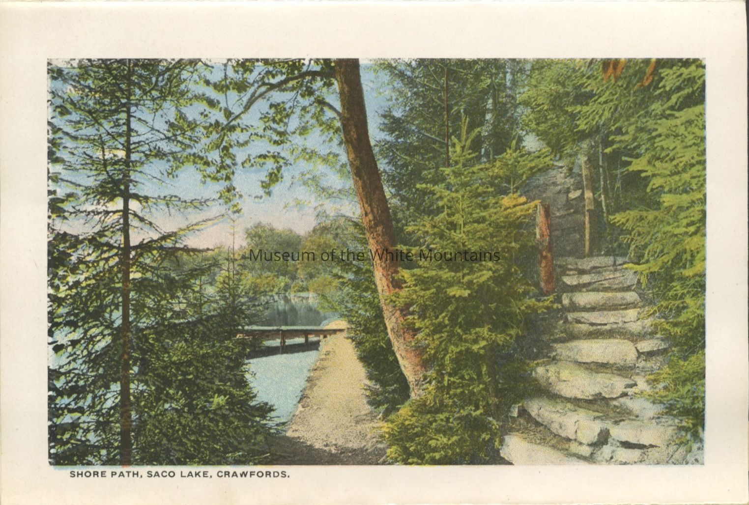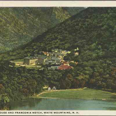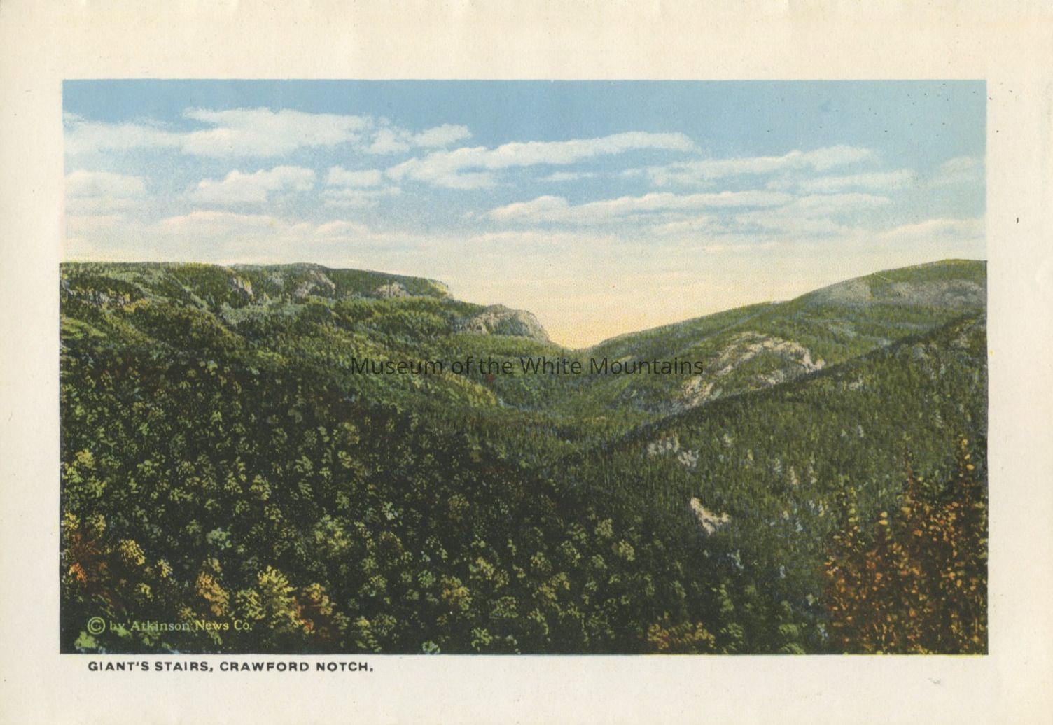 Beecher Cascade (Grafton county, New Hampshire : stream), Crawford House (Coos county, New Hampshire : inhabited place), Crawford Notch (New Hampshire : valley), Elephant Head (Carroll county, New Hampshire : rock), Frankenstein Trestle (Coos county, New Hampshire : structure), Giants Stairs (Coos county, New Hampshire : rock), Gibbs Falls (Coos county, New Hampshire : waterfall), Willard, Mount (Carroll county, New Hampshire : peak), North Conway Scenic Railroad, Pearl Cascade (Grafton county, New Hampshire : waterfall), Saco Lake (Coos county, New Hampshire : lake), Silver Cascade (New Hampshire, United States : stream), Willey Brook Bridge (Carroll county, New Hampshire : structure), mountains, railroad tracks, trains, hotels, dirt roads, utility poles, notches, automobiles, people, Buildings, lakes, railroad platforms, paths, docks, bridges, trestles, donkeys, waterfalls, cascades,