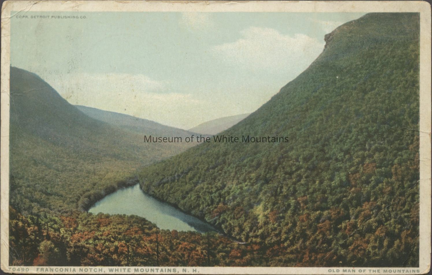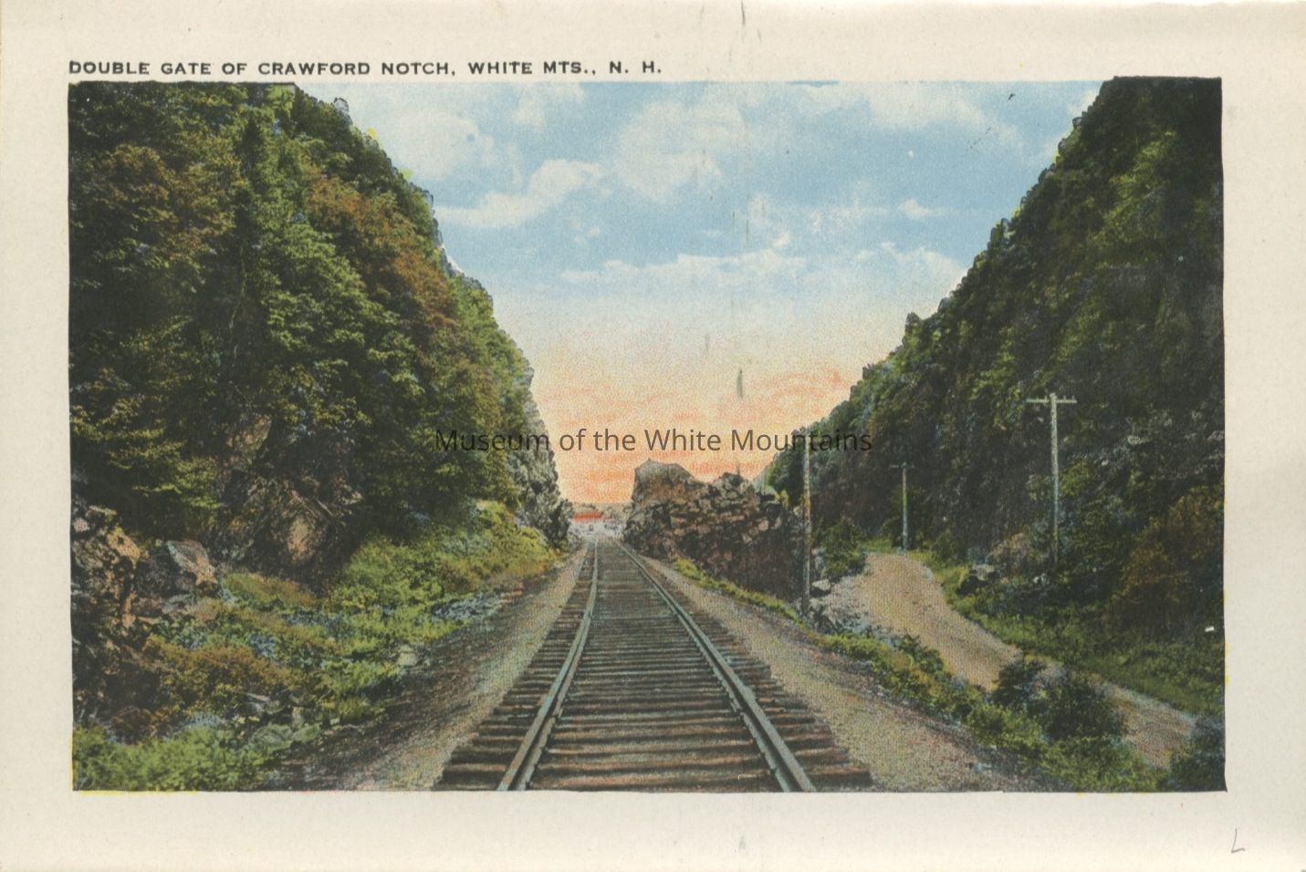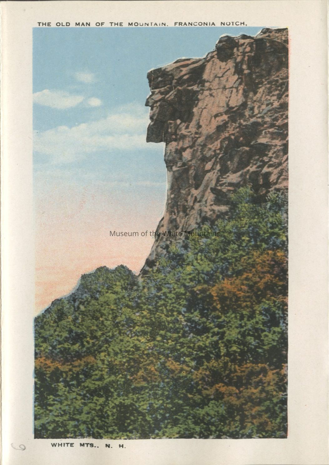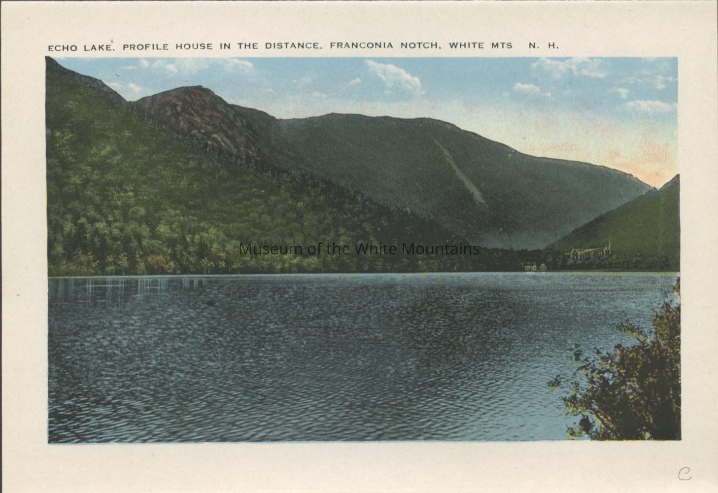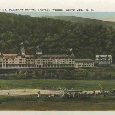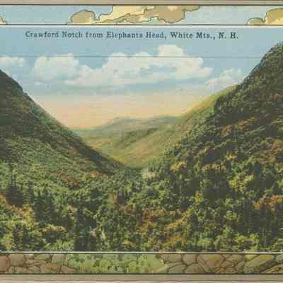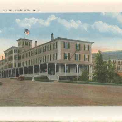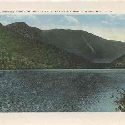 The Basin (Grafton county, New Hampshire : basin), Bretton Woods (Coos county, New Hampshire : inhabited place), Bridal Veil Falls (Grafton county, New Hampshire : cascade), Cannon Mountain (Grafton county, New Hampshire : peak), Mount Washington Cog Railway, Crawford House (Coos county, New Hampshire : inhabited place), Crawford Notch (New Hampshire : valley), Echo Lake (Grafton county, Carroll county, New Hampshire : lake), Elephant Head (Carroll county, New Hampshire : rock), Fabyan House (Coos county, New Hampshire : inhabited place), Flume, The (Grafton county, New Hampshire : valley), Franconia Notch (Grafton county, New Hampshire : valley), Washington, Mount (Coos county, New Hampshire : mountain), Mount Washington Hotel (Coos county, New Hampshire : inhabited place), Old Man of the Mountain (Grafton county, New Hampshire : peak), Mount Pleasant House (Carroll county, New Hampshire : inhabited place), Profile House (Grafton county, New Hampshire : inhabited place), Profile Lake (Grafton county, New Hampshire : lake), mountains, notches, rocks, railroad tracks, utility poles, hotels, baseball, people, Buildings, resorts,dirt roads, rivers,railroads, trains, clouds,lakes, automobiles, tennis courts, flags, waterfalls, cascades, Geological formations