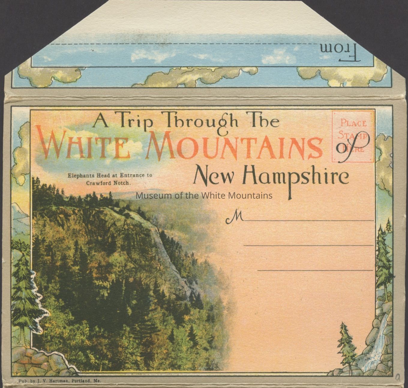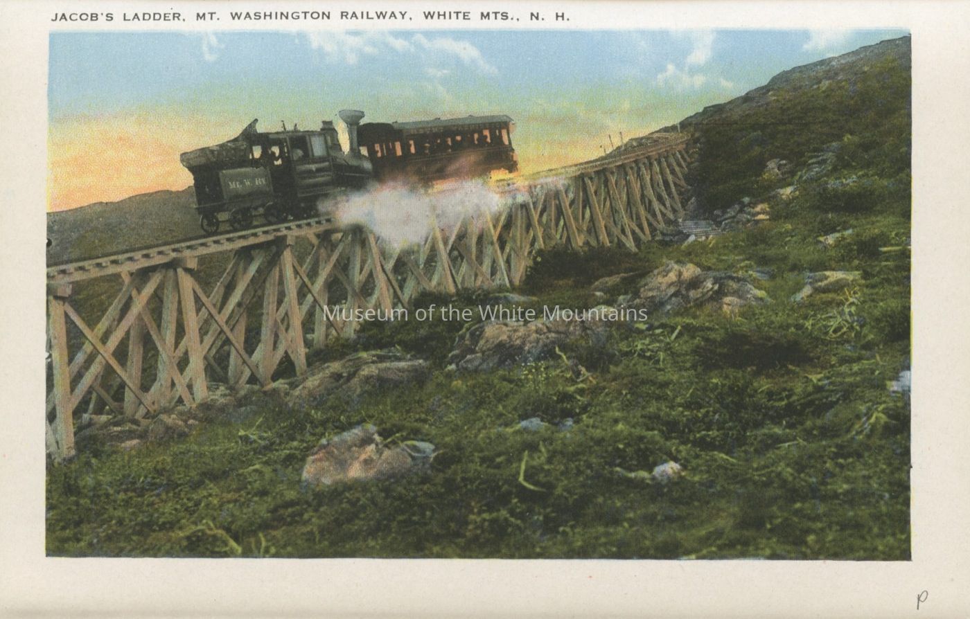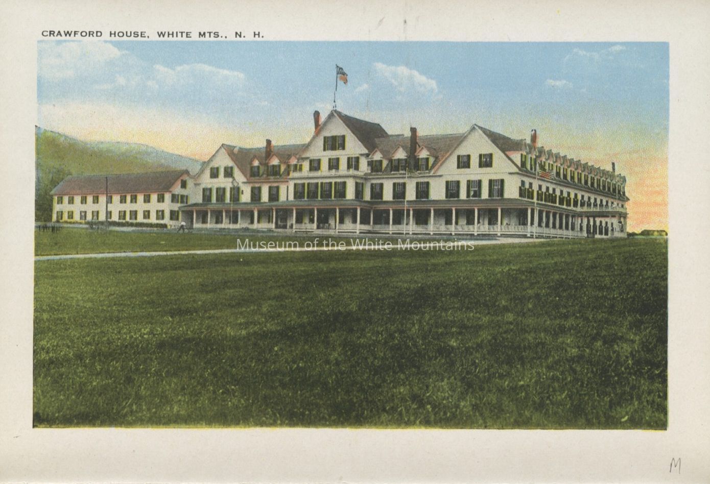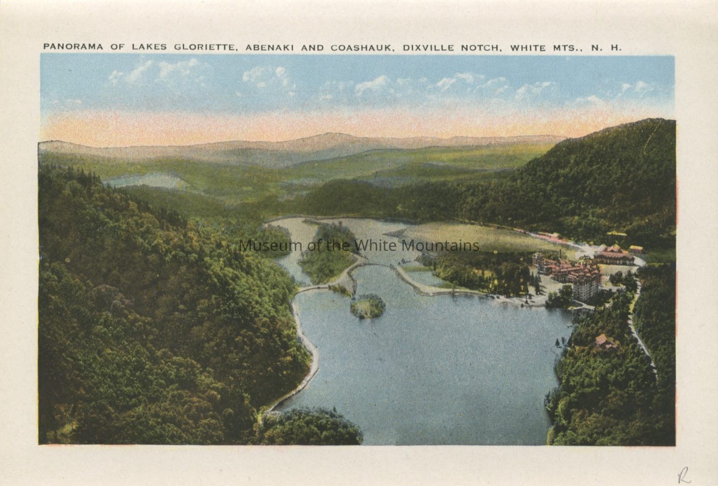 The Basin (Grafton county, New Hampshire : basin), Bretton Woods (Coos county, New Hampshire : inhabited place), Bridal Veil Falls (Grafton county, New Hampshire : cascade), Cannon Mountain (Grafton county, New Hampshire : peak), Mount Washington Cog Railway, Crawford House (Coos county, New Hampshire : inhabited place), Crawford Notch (New Hampshire : valley), Echo Lake (Grafton county, Carroll county, New Hampshire : lake), Elephant Head (Carroll county, New Hampshire : rock), Fabyan House (Coos county, New Hampshire : inhabited place), Flume, The (Grafton county, New Hampshire : valley), Franconia Notch (Grafton county, New Hampshire : valley), Washington, Mount (Coos county, New Hampshire : mountain), Mount Washington Hotel (Coos county, New Hampshire : inhabited place), Old Man of the Mountain (Grafton county, New Hampshire : peak), Mount Pleasant House (Carroll county, New Hampshire : inhabited place), Profile House (Grafton county, New Hampshire : inhabited place), Profile Lake (Grafton county, New Hampshire : lake), mountains, notches, rocks, railroad tracks, utility poles, hotels, baseball, people, Buildings, resorts,dirt roads, rivers,railroads, trains, clouds,lakes, automobiles, tennis courts, flags, waterfalls, cascades, Geological formations