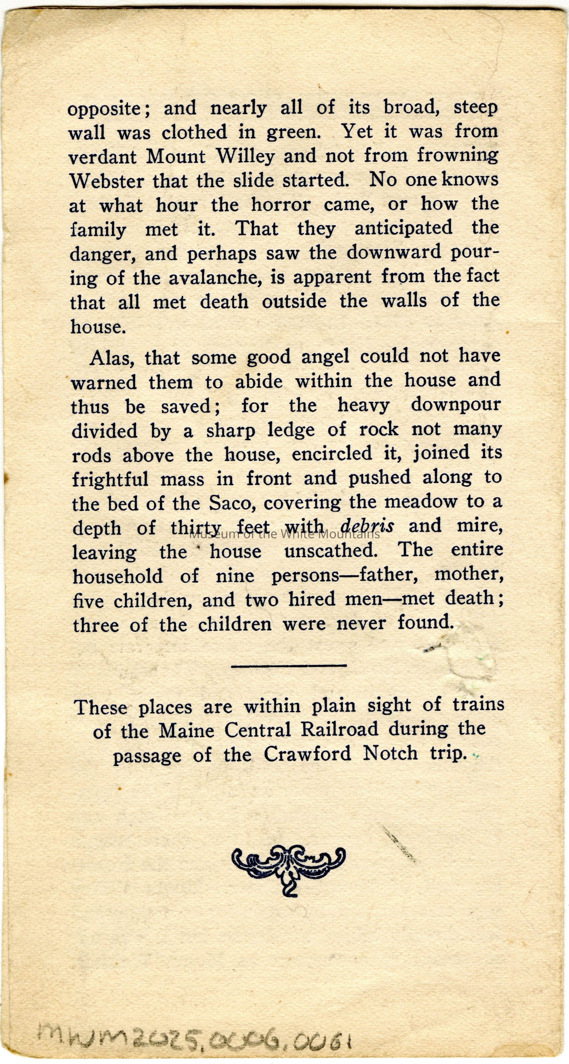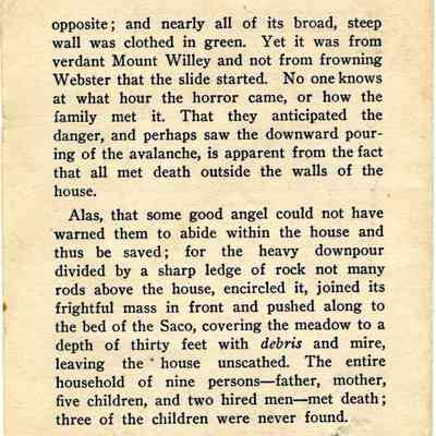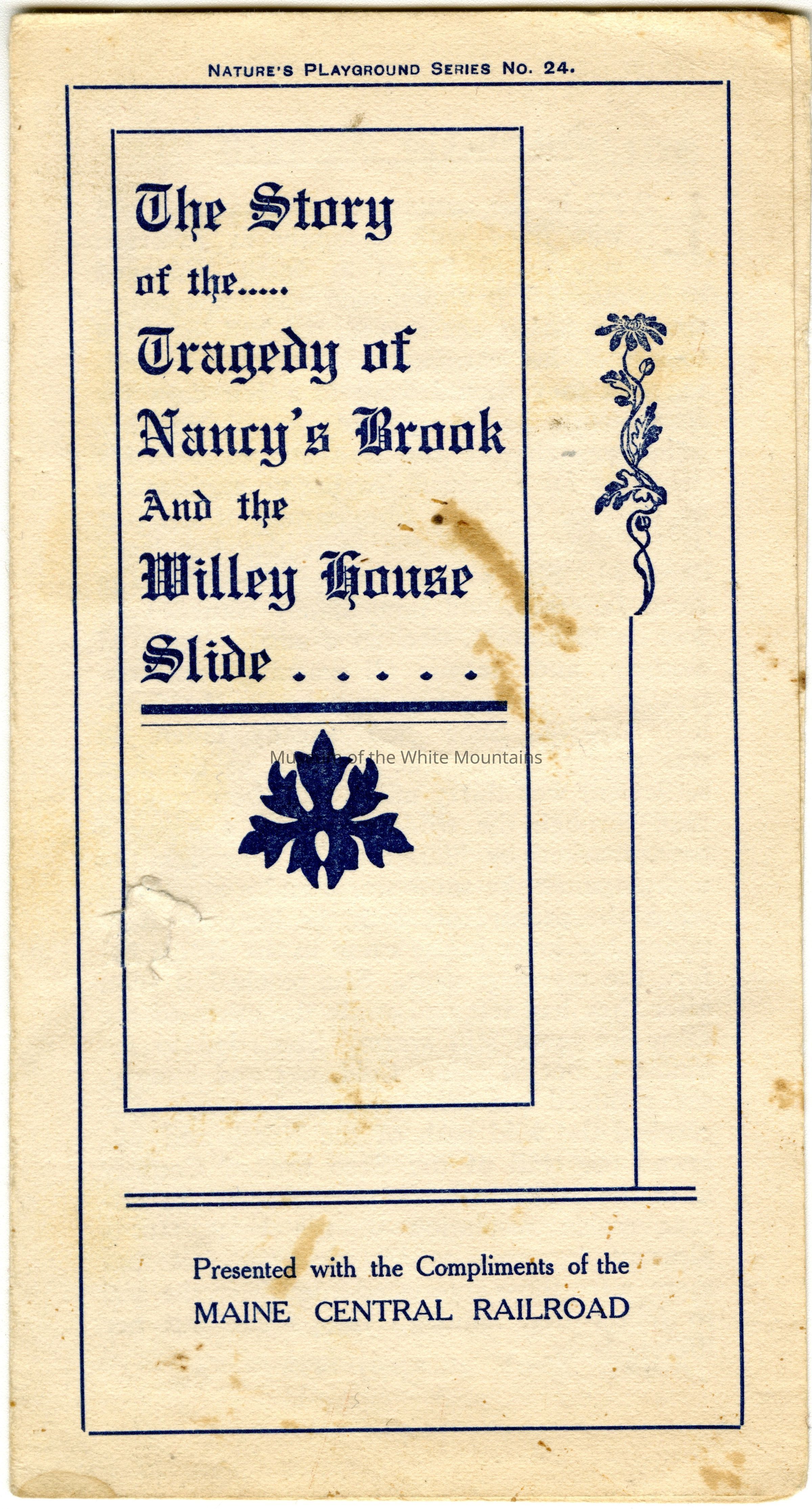 A small leaflet containing the stories of Nancy's Brook and the Willey Slide.Acquisition