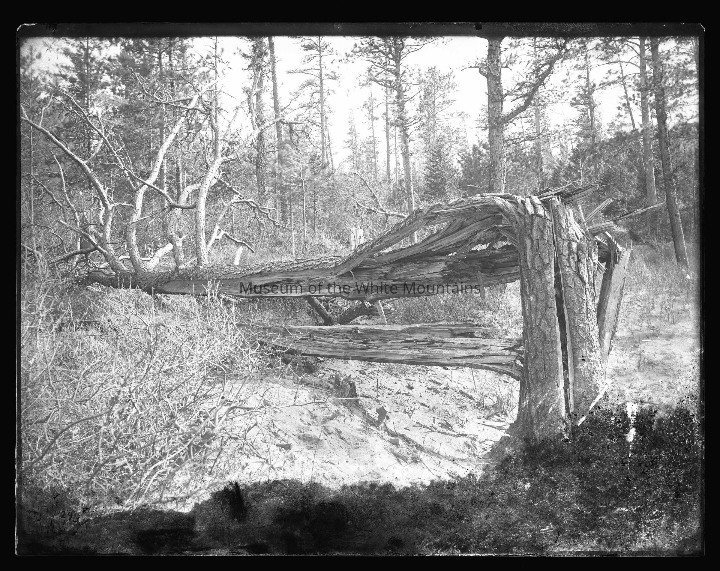 View of a dead tree that has fallen over in the woods. In the bottom left corner has the number 293 etched on it.