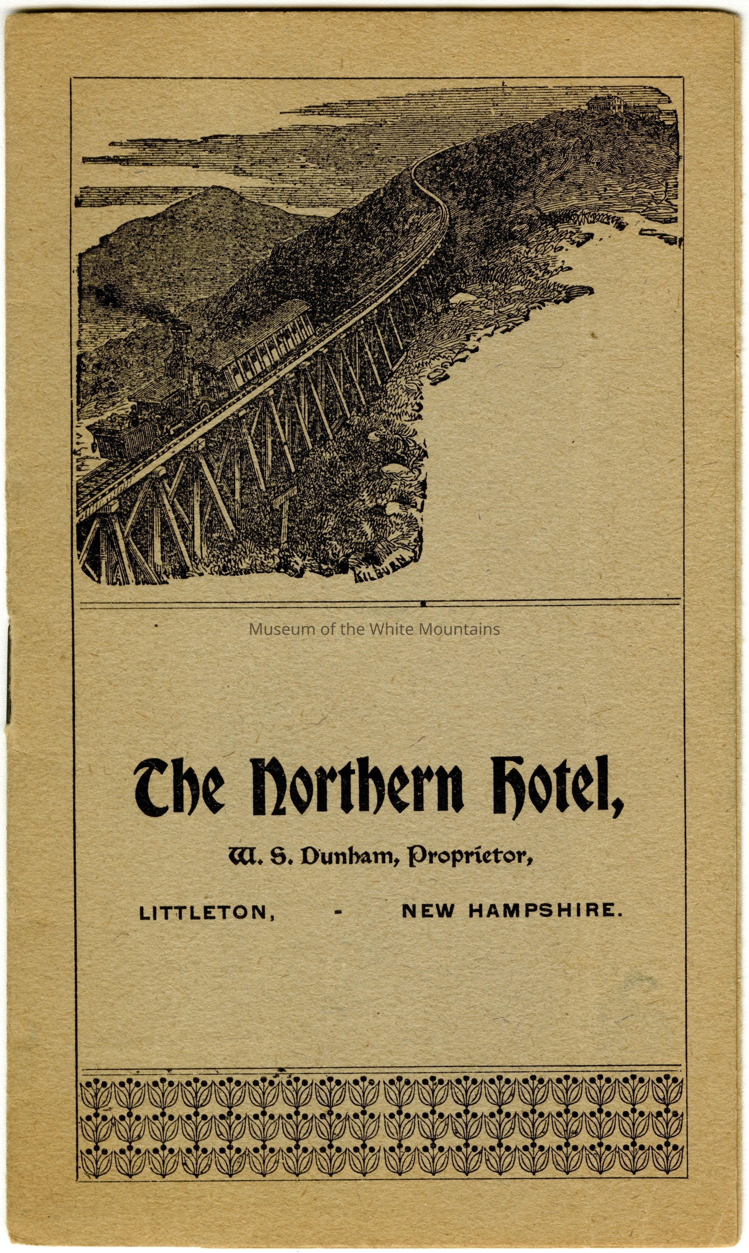 A small light brown booklet containing images and text pertaining to Littleton and the surrounding area, including things to do on daily excursions from 'The Northern Hotel.'Acquisition