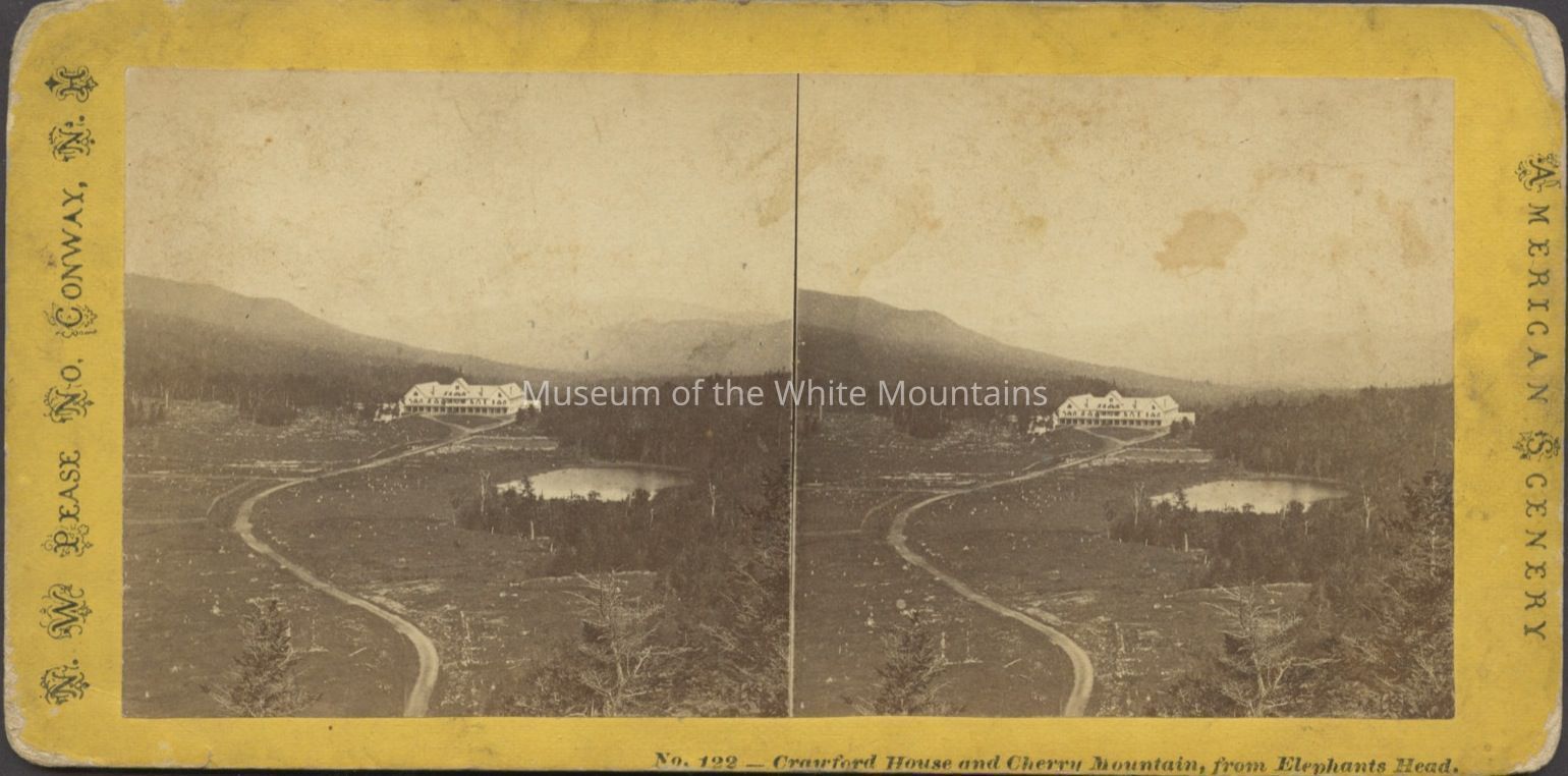 Crawford House (Coos county, New Hampshire : inhabited place), Cherry Mountain (Coos county, New Hampshire : peak), Elephant Head (Carroll county, New Hampshire : rock), hotels, Buildings, mountains, lakes, dirt roads