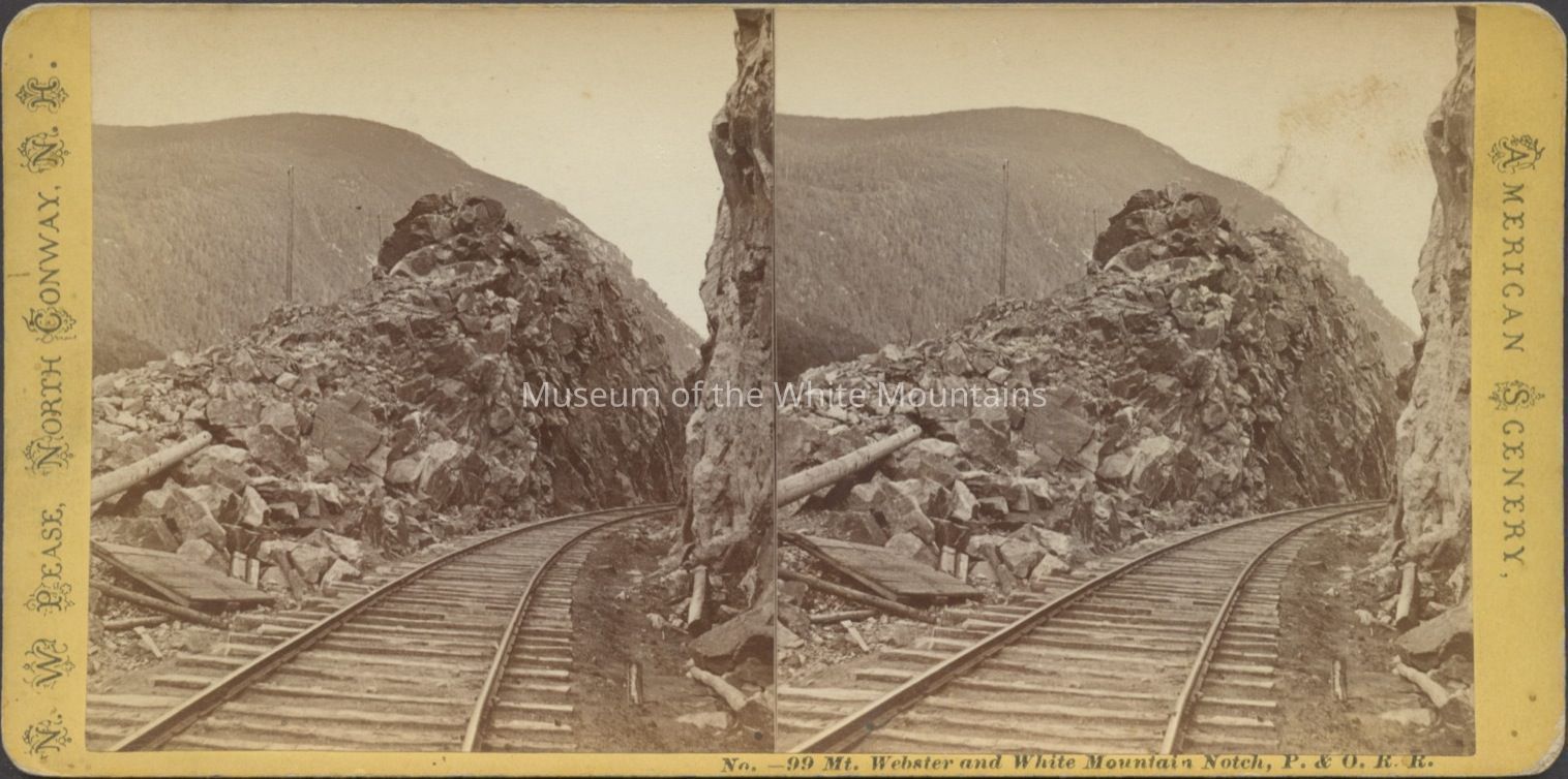 Webster, Mount (Coos county, Carroll county, New Hampshire: peak), Portland and Ogdensburg Railroad, railroad tracks, rocks, ledges