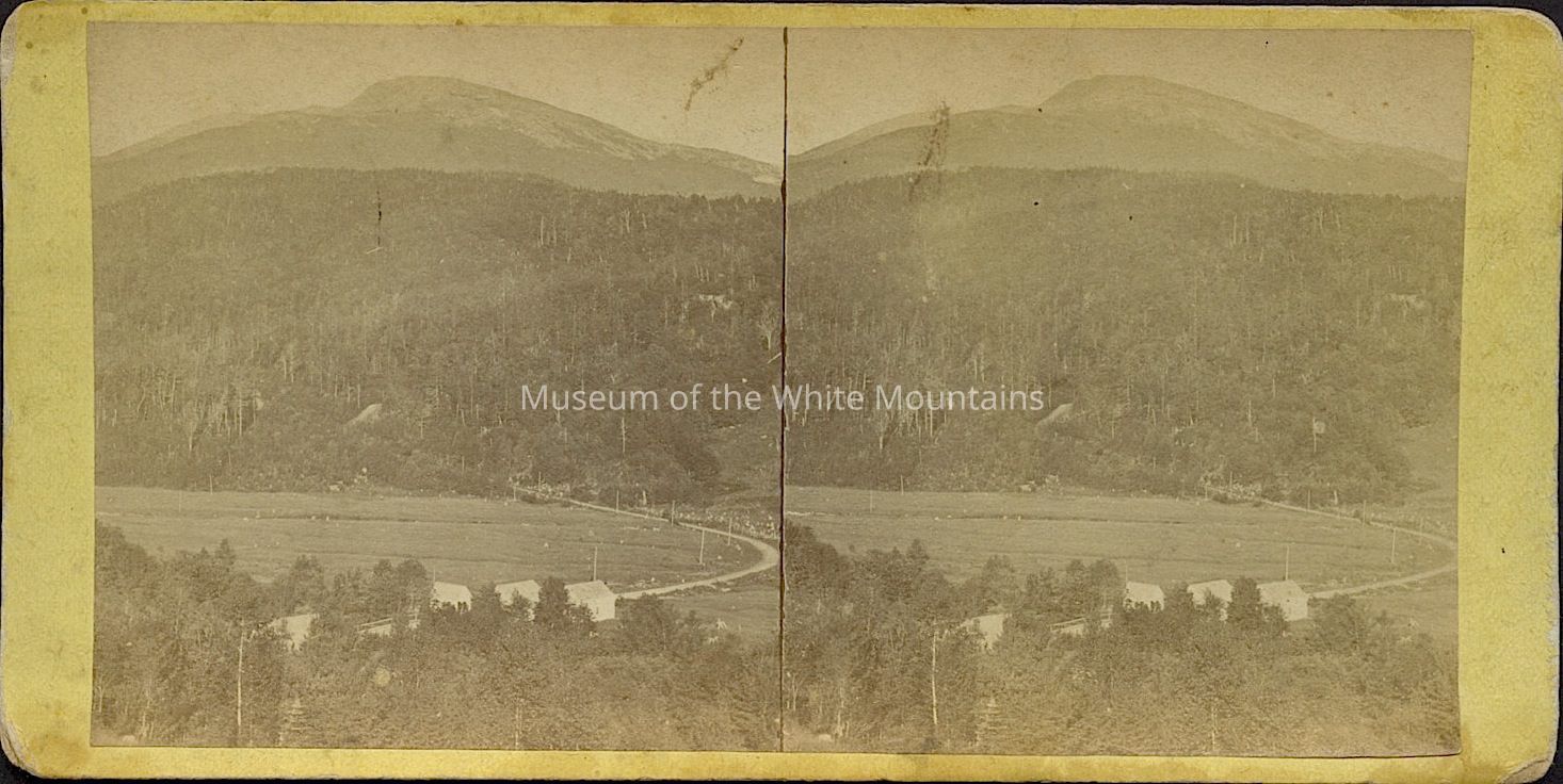 Glen House (Coos county, New Hampshire : inhabited place), Washington, Mount (Coos county, New Hampshire : mountain), White Mountains (New Hampshire : mountains), clearings, dirt roads, mountains, Buildings