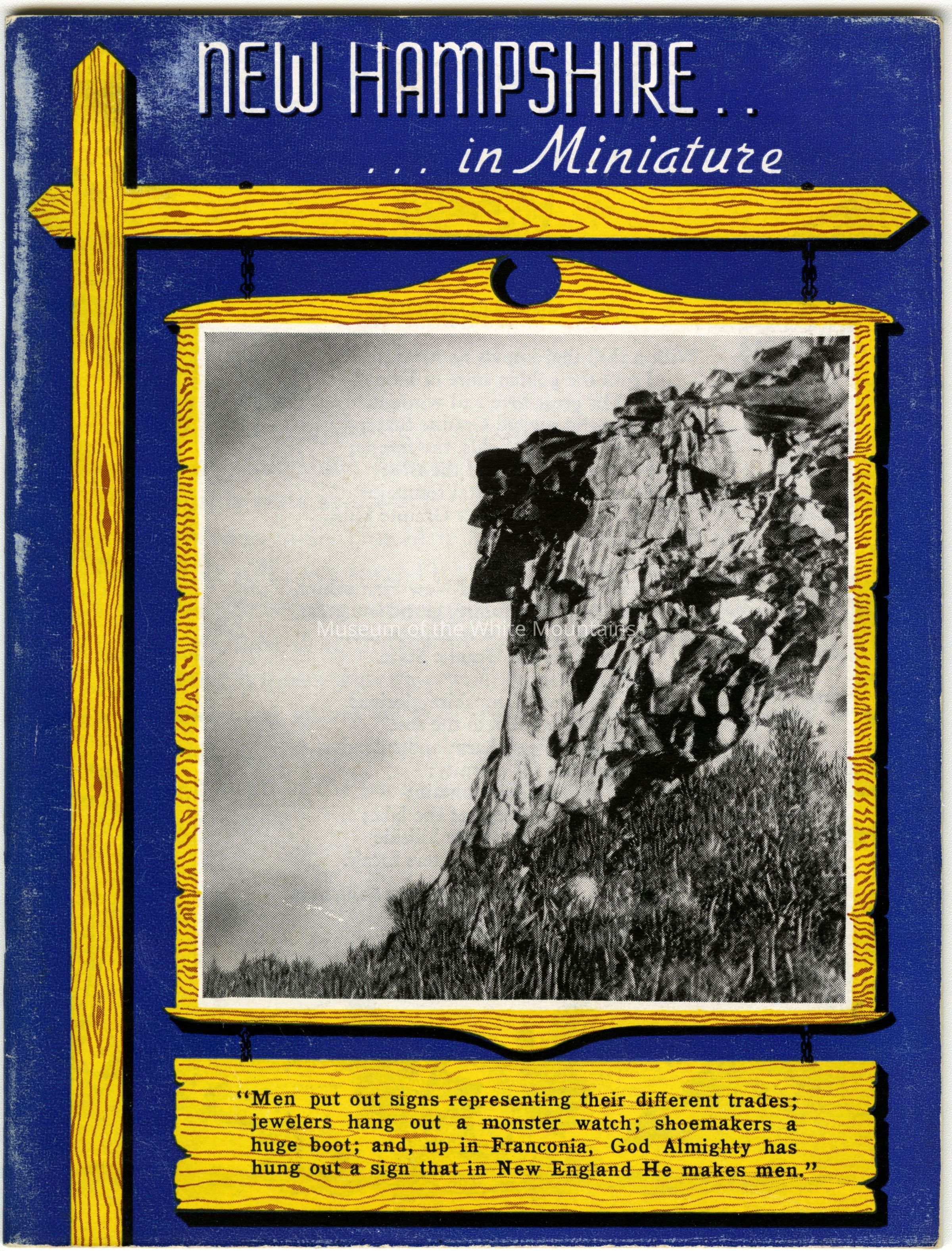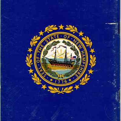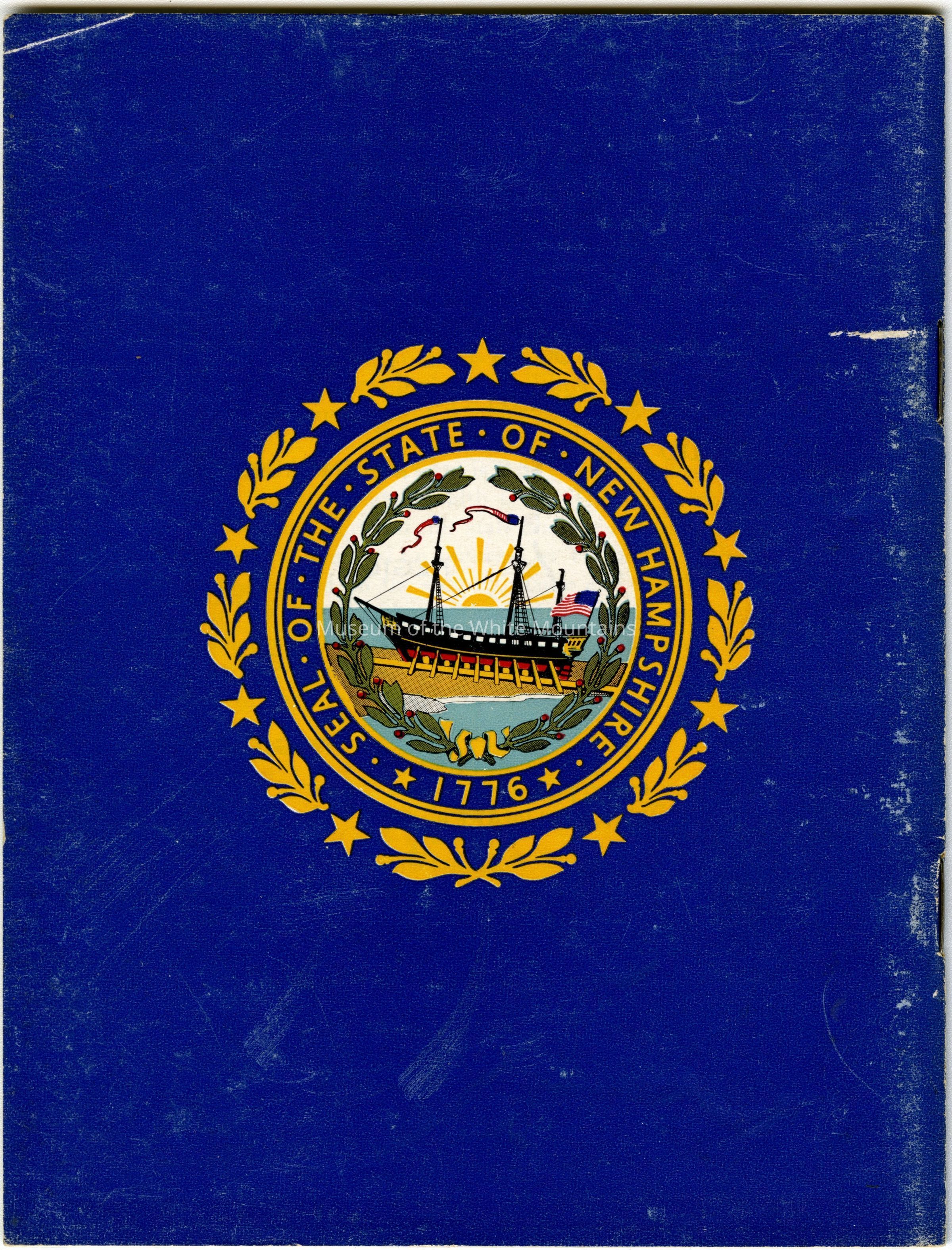 A small blue and yellow booklet containing photographs and information of/about New Hampshire.