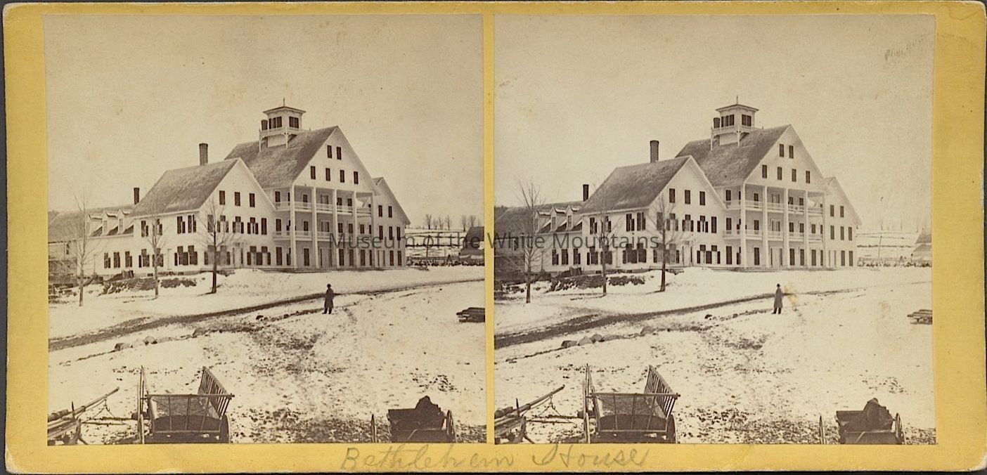 Sinclair House (Grafton county, New Hampshire : inhabited place), Bethlehem (Grafton county, New Hampshire : inhabited place), Bethlehem House (Grafton county, New Hampshire : inhabited place), Boardinghouses, Buildings, people, carriages, snow, winter, carriages