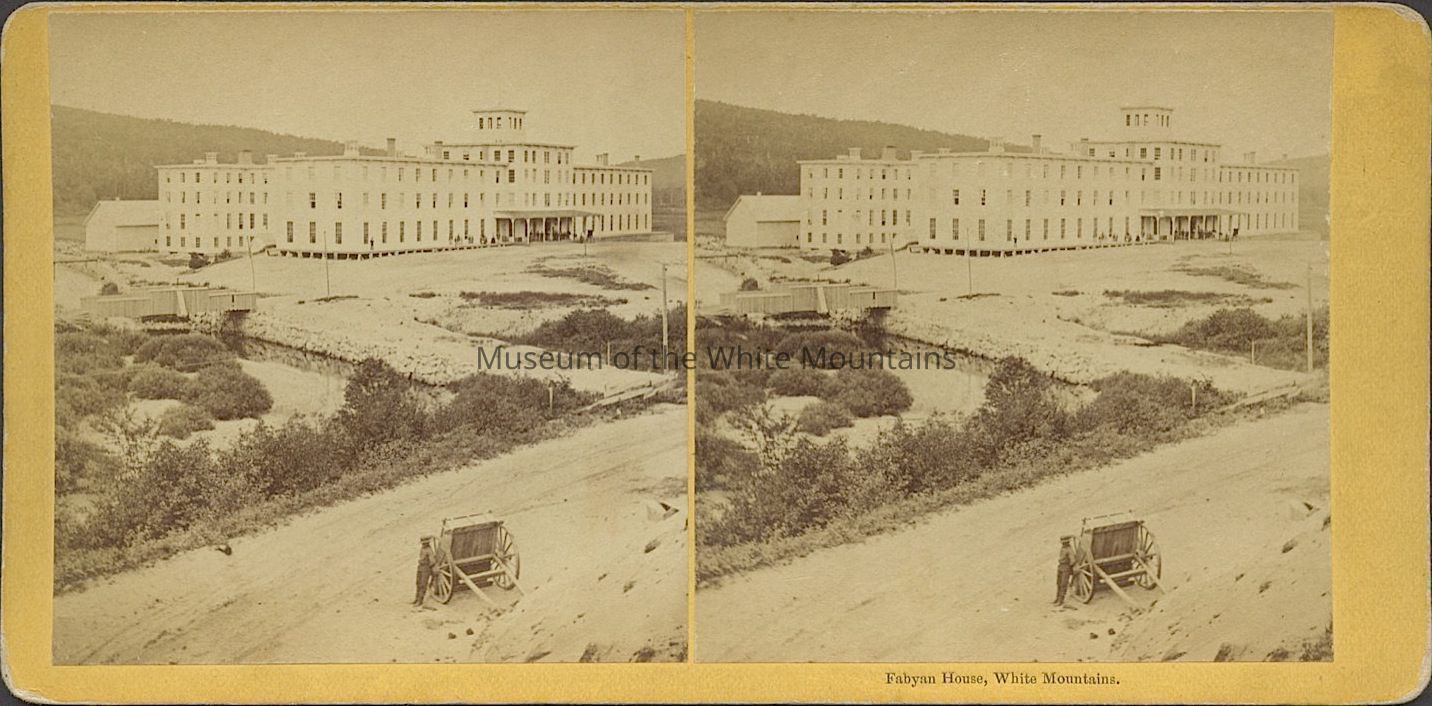 Fabyan House (Coos county, New Hampshire : inhabited place) White Mountains (New Hampshire : mountains), hotels, dirt roads, people, rivers, bridges, carriages,Dimensions
